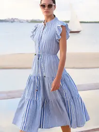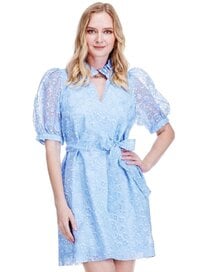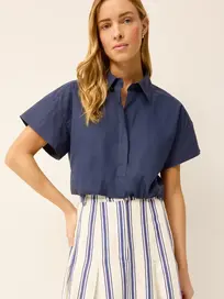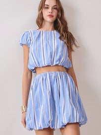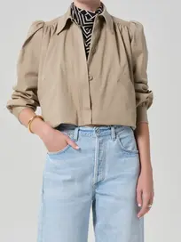 Featuring a high neckline and puff sleeves, this fitted silhouette is crafted from a high-stretch double knit fabrication that hugs the body while allowing ease of movement. Its minimal design is elevated by tailoring, creating a flattering shape.