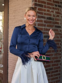 Your knitwear collection just got sweeter. The Kitty Bobble Contrast Cardigan combines timeless texture with a touch of playfulness. Its soft bobble knit and statement velvet bow bring a feminine finish to classic coziness.