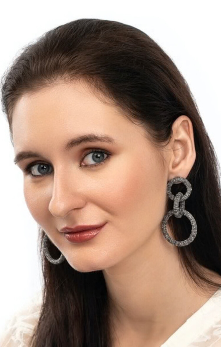 • An interlocking mix of densely beaded and crystalline hoops composes these elegant Deepa Gurnani drop earrings.