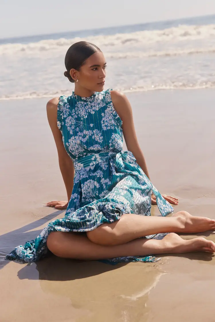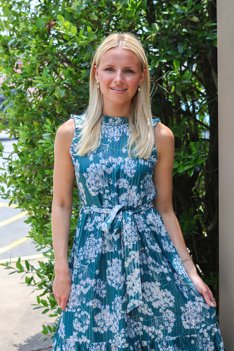 • This signature Marie Oliver maxi dress style is much beloved for its effortless, feminine lines and the way the tiers of fabric and metallic-flecked silk lurex fabric adds just the right touch of glamour.