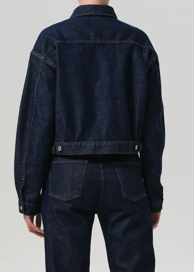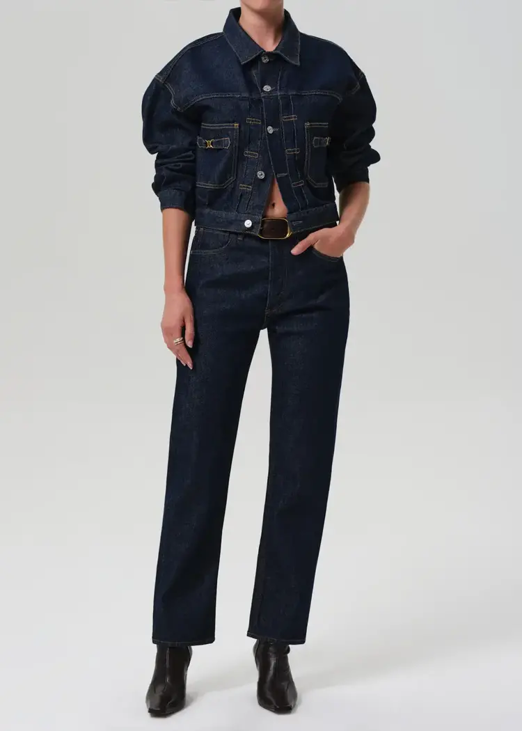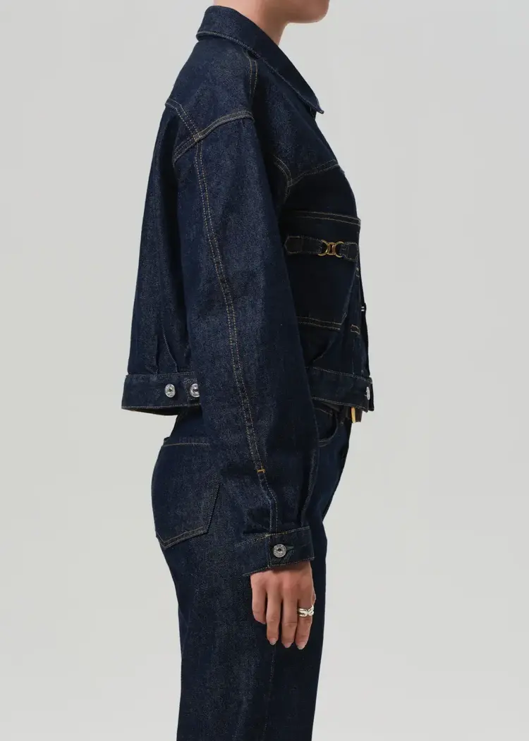 The Alma Jacket offers a refined take on classic denim, cut from comfort stretch regenerative cotton with a soft, broken-in hand. The tailored silhouette is finished with equestrian-inspired horsebit hardware for a polished edge.