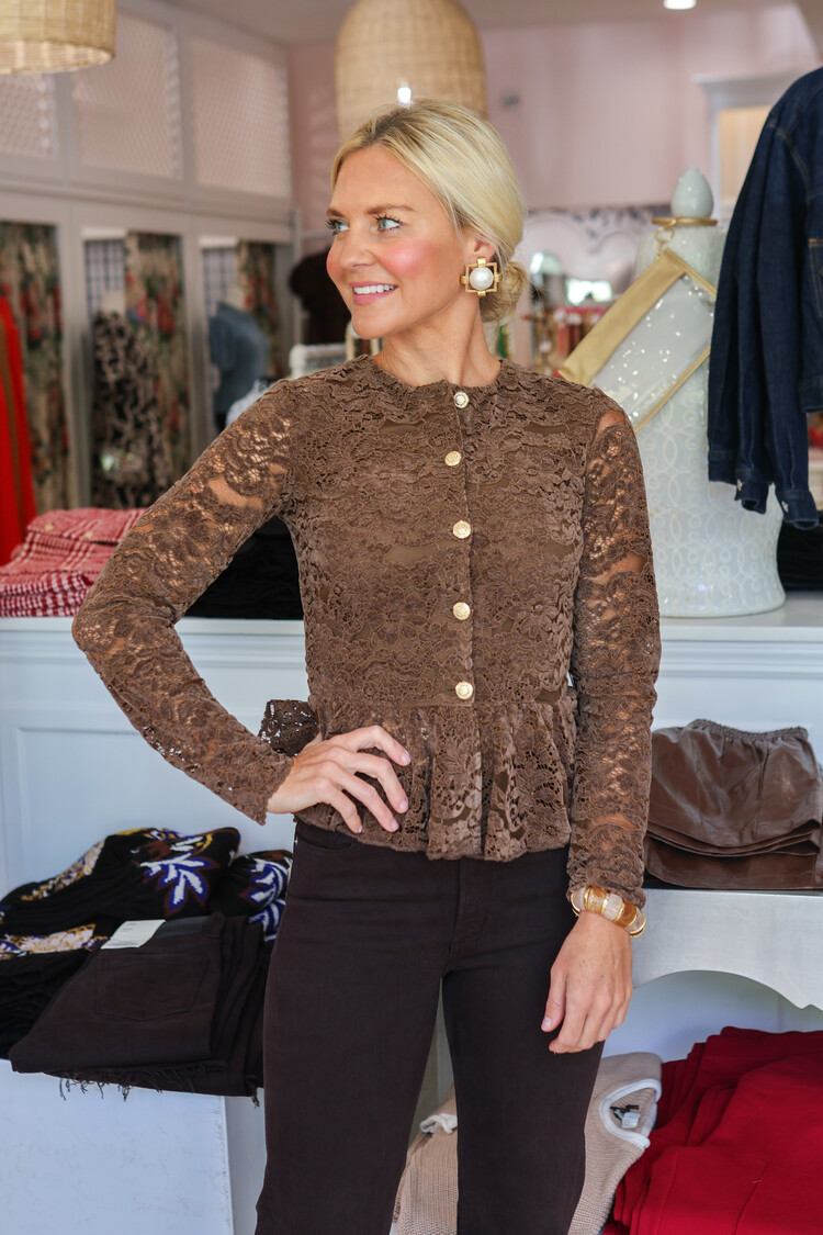 The Emily Top is the perfect button front blouse, featuring a mandarin collar, covered placket, and balloon sleeves. This season, she is cut from a cotton blend fabric in our Grandeur Cherry print, perfect for dressing up or down this season.