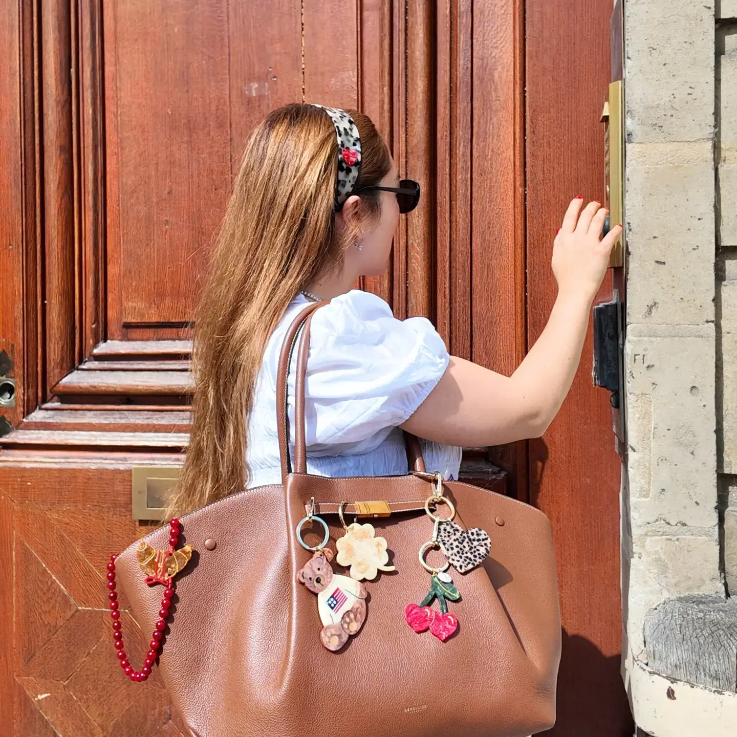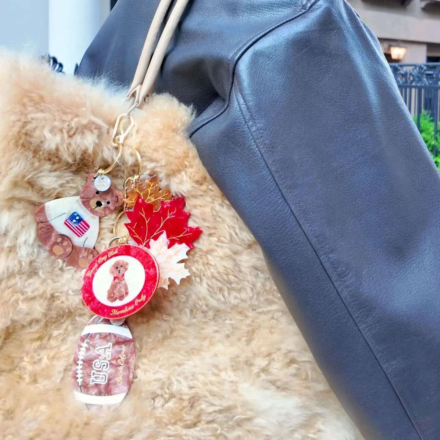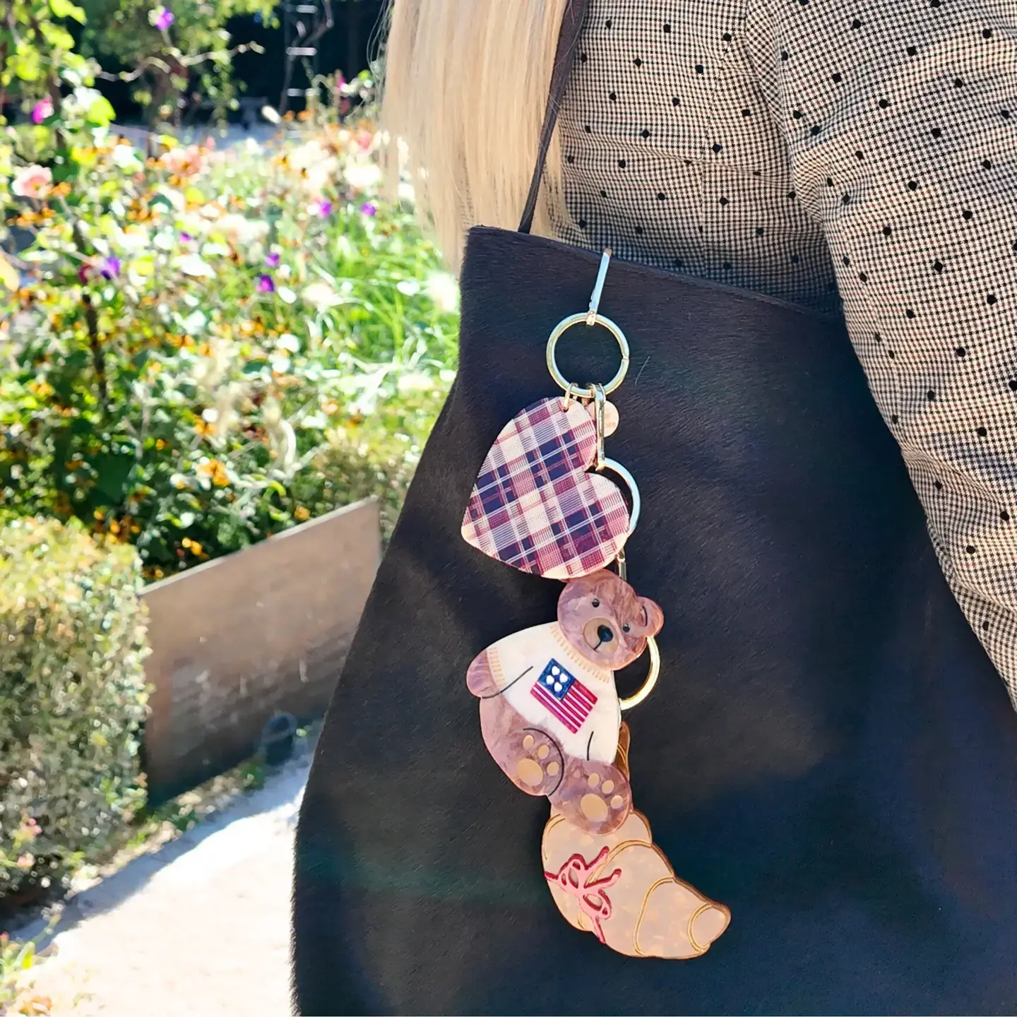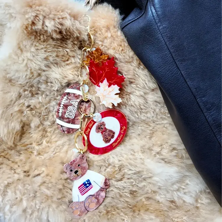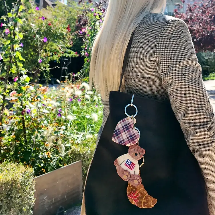 • It's designed in NYC to upgrade your favorite bag or set of keys. The charm is hand-painted on both sides, for an iconic look from all angles. Crafted with our super-strong biodegradable acetate, our pieces can be used as a bag charm or a keychain.