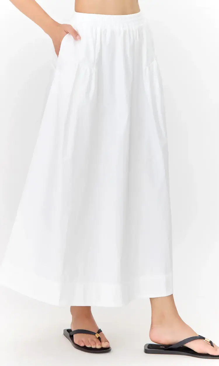• Presented in a brilliant, pristine White, the Ana skirt is a masterclass in clean lines and purposeful volume. This piece is crafted from premium cotton poplin, a fabric beloved for its signature "paper-touch" crispness.