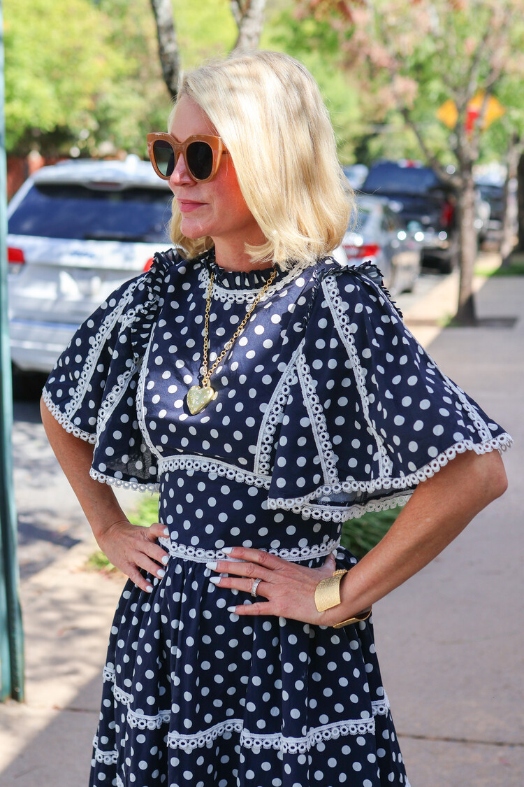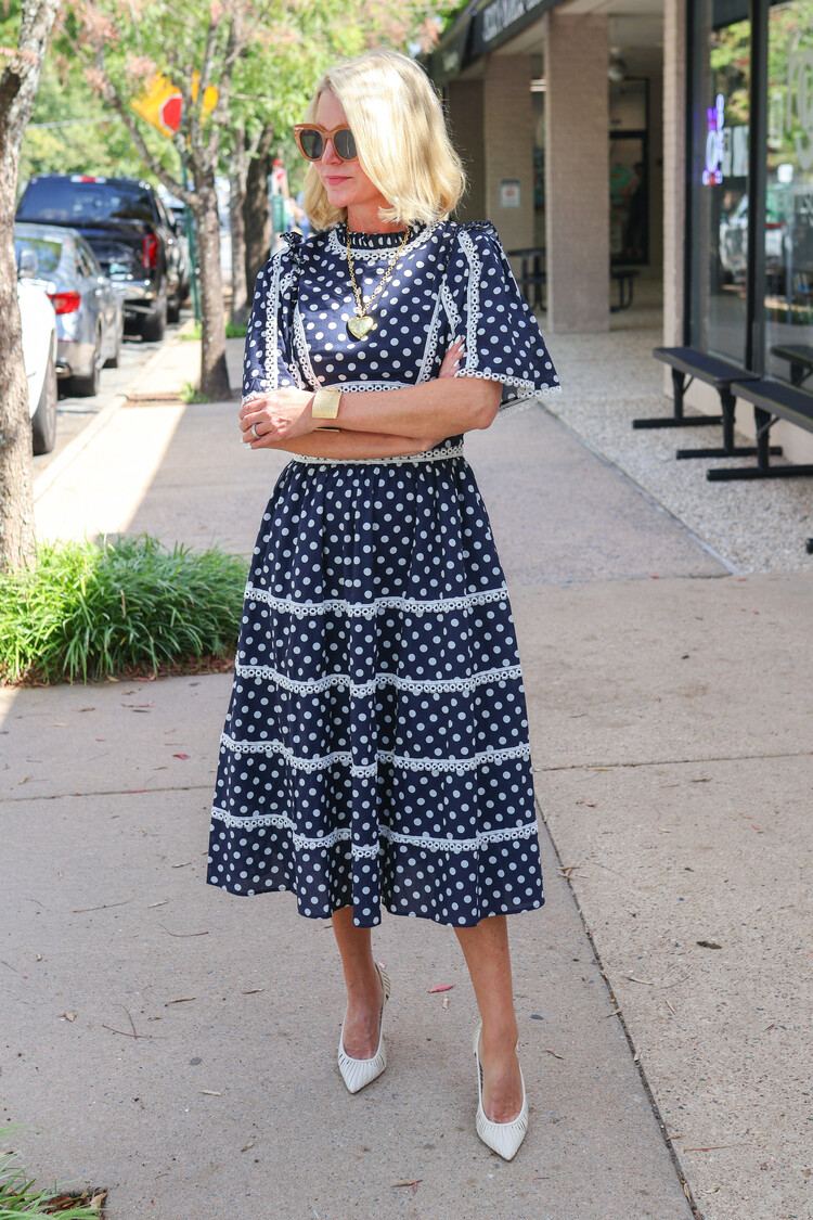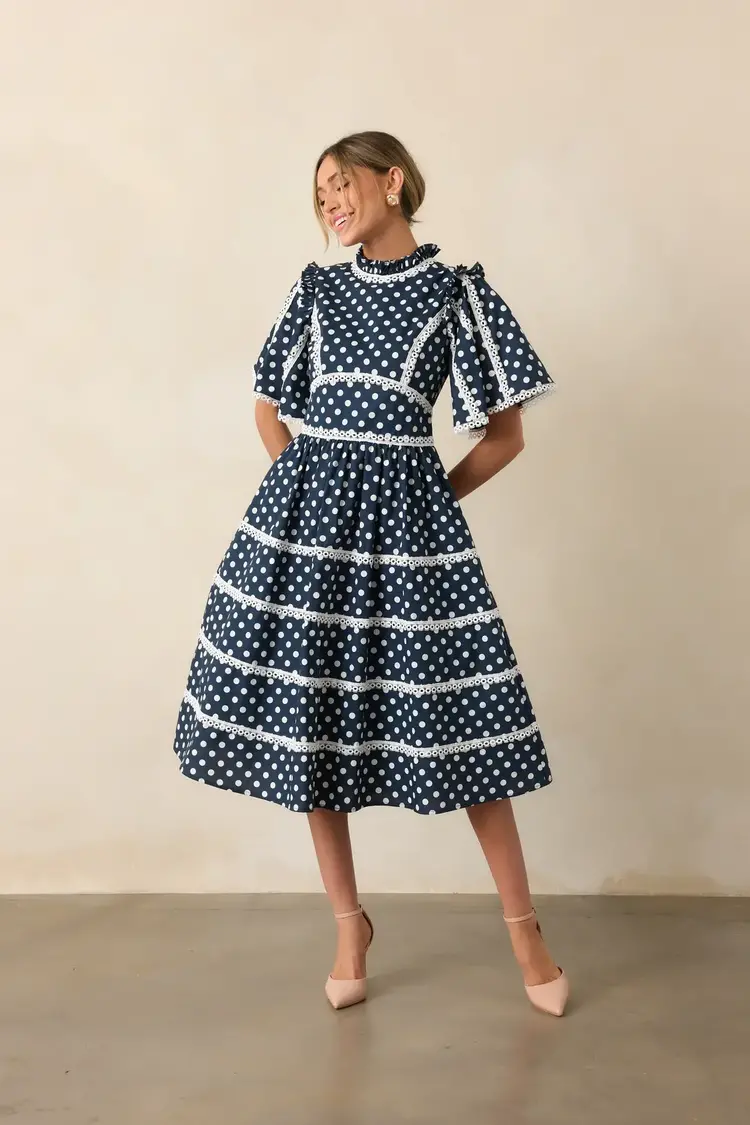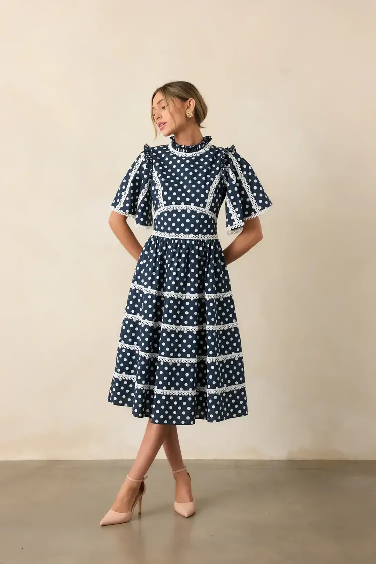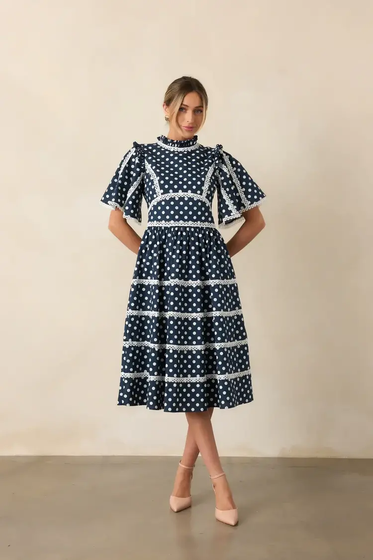 Discover the playful charm of the Prosperina Margot Reversible Midi Dress, featuring a floral pattern on one side and a sleek navy on the other. Effortlessly switch up your look with a simple flip, while the back zipper ensures a perfect fit every time.