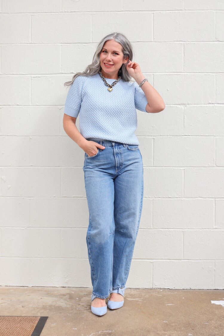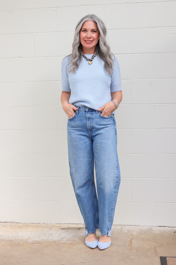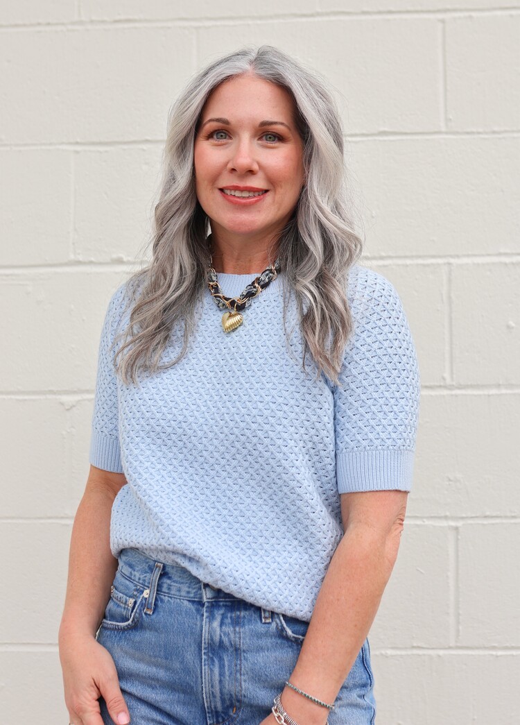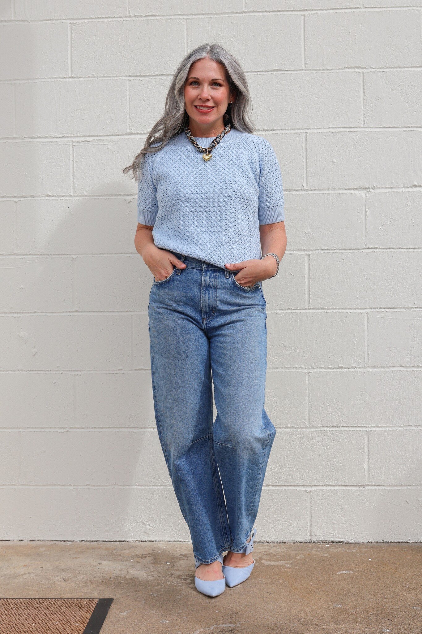 • Loose knot crochet knit short sleeve sweater. Boxy fit, true to size.