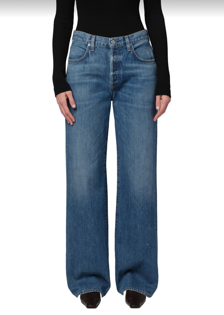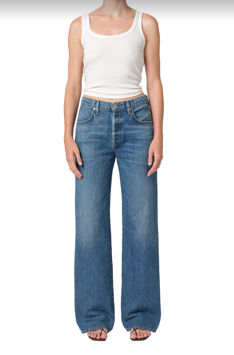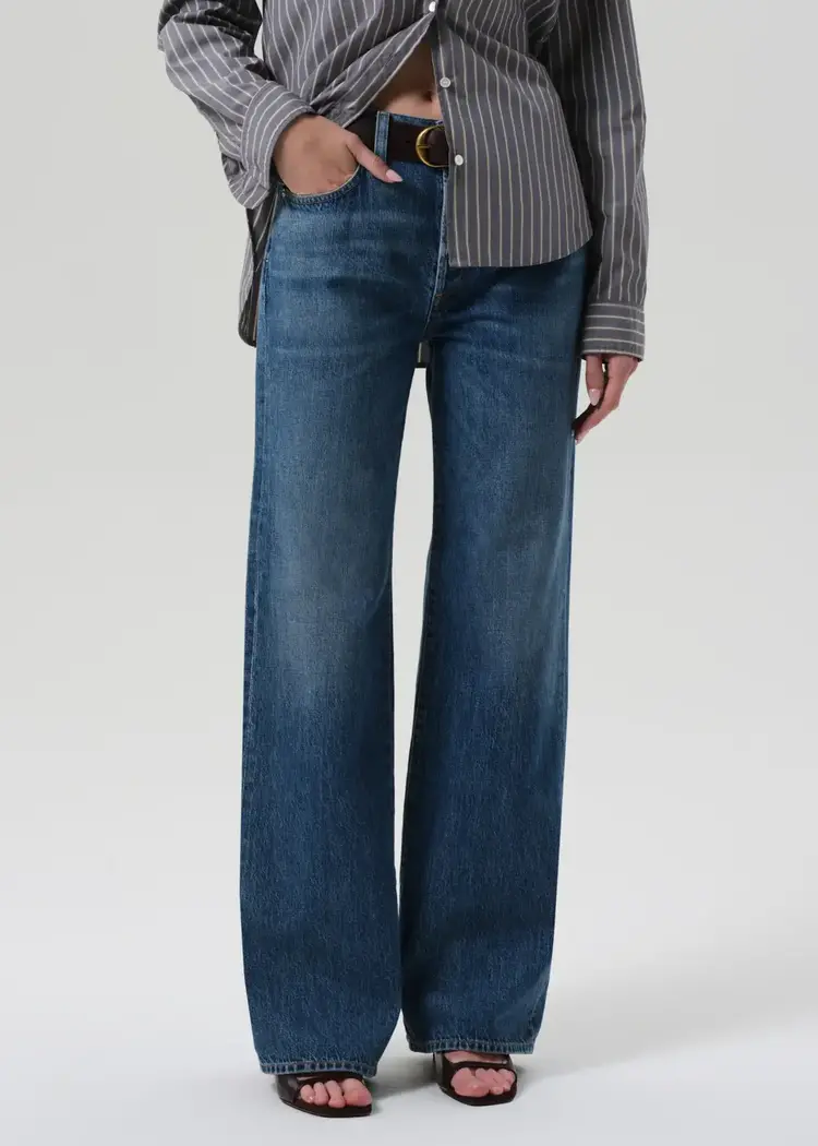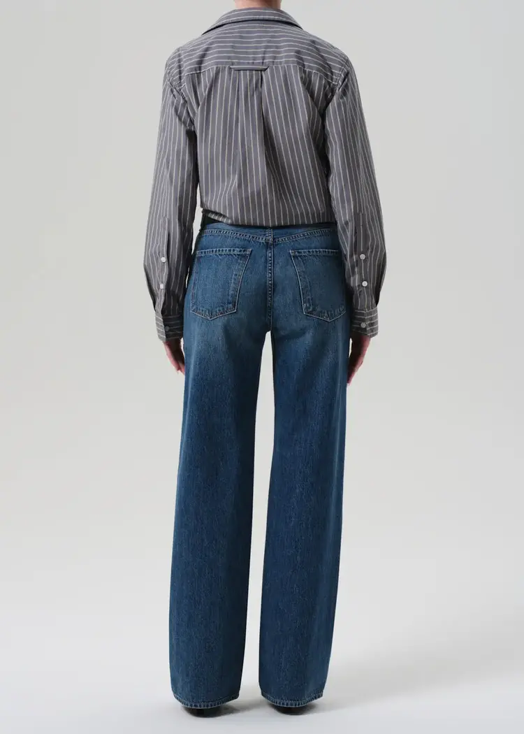 • The Annina jean features a high rise and full-length straight leg for a relaxed yet refined shape. The ‘Sunland’ wash is a sun-faded medium indigo with vintage-inspired whiskering. Made from rigid regenerative cotton, the denim has a soft, broken-in feel.