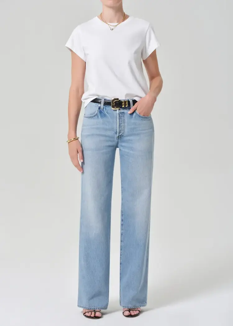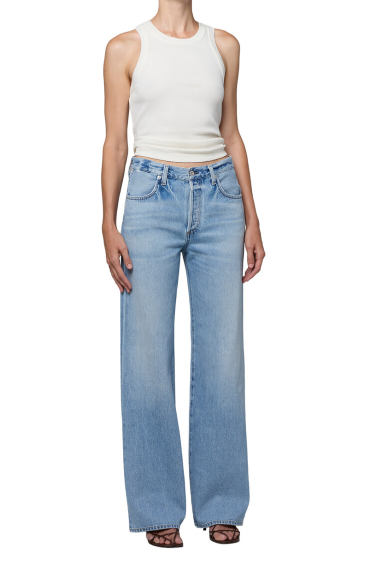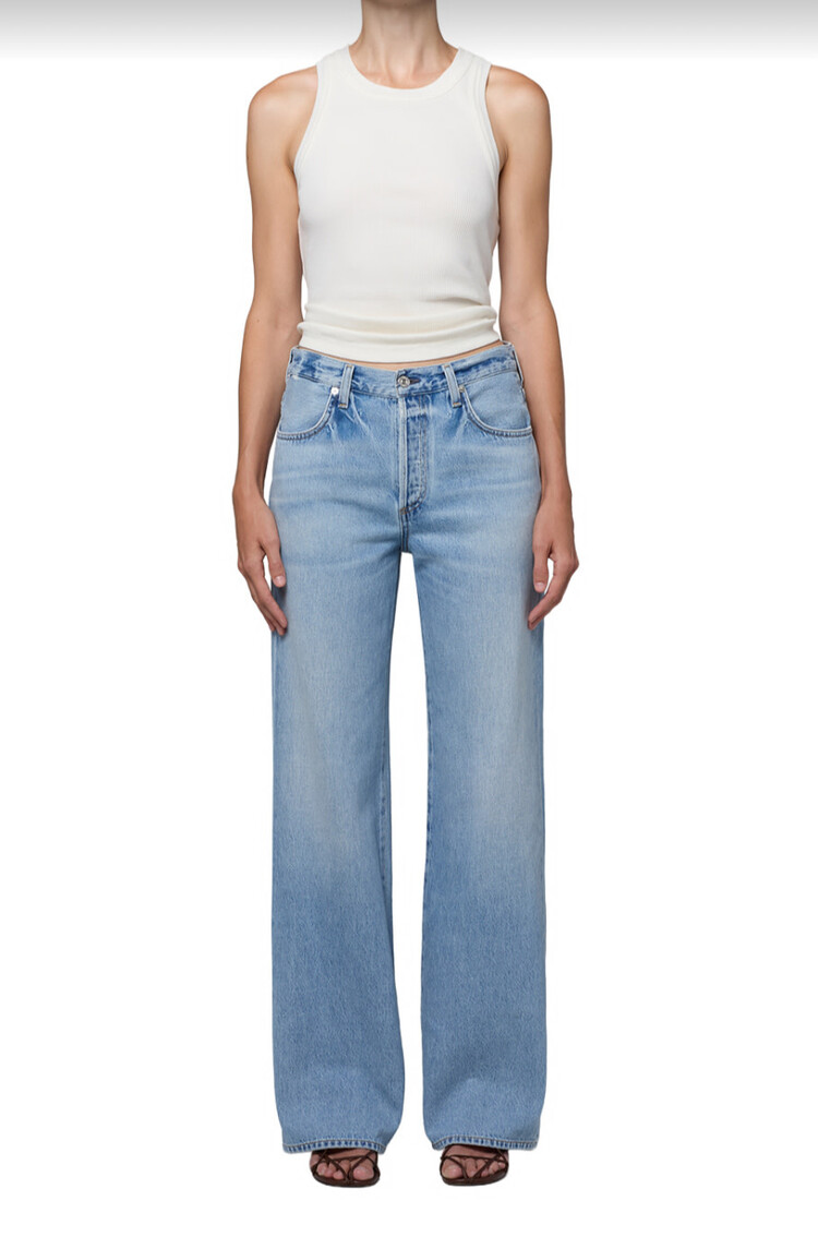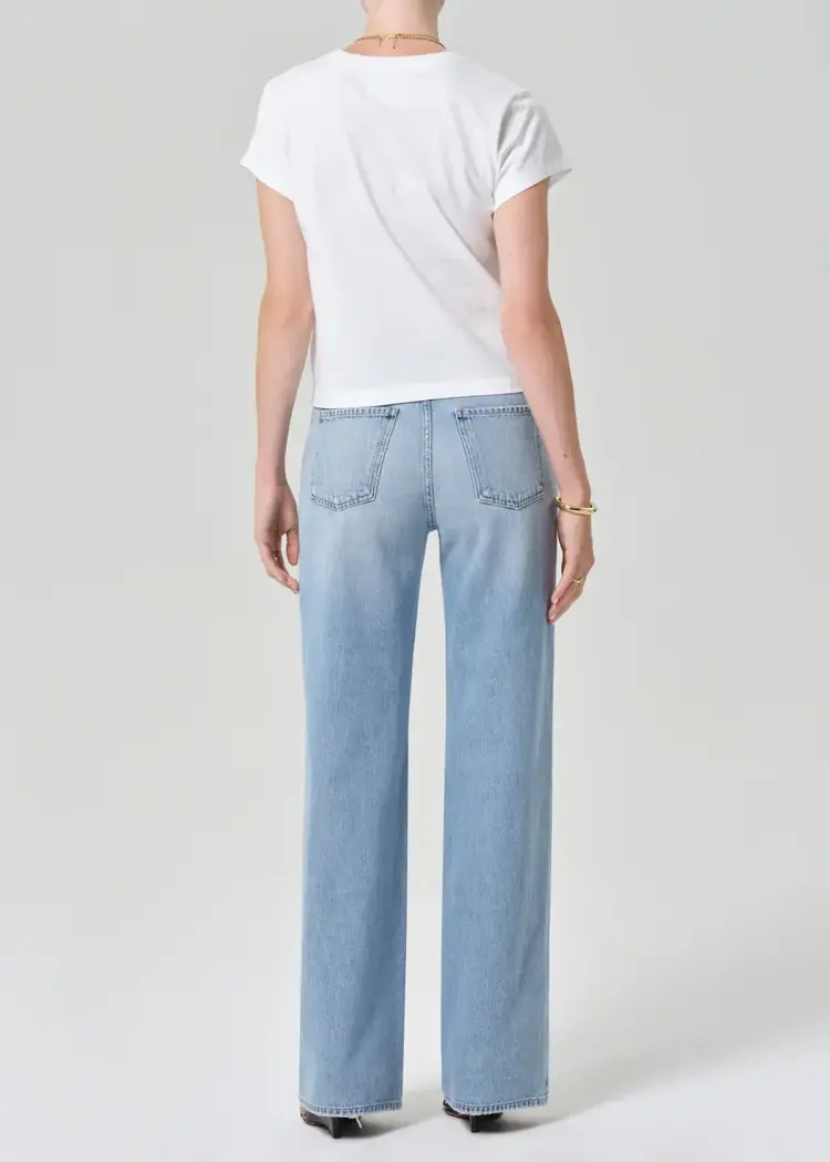 • A timeless silhouette with subtle vintage character, this jean features a high-rise waist and clean, straight-leg shape that drapes with ease. The ‘Ritual’ wash—a sun-faded light indigo with soft whiskering and fading—evokes a well-worn favorite.