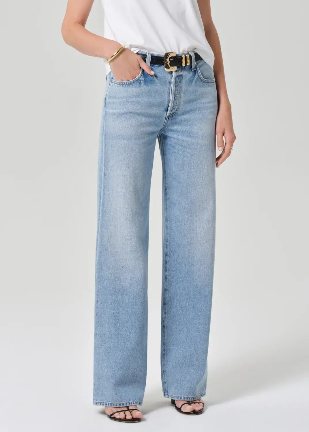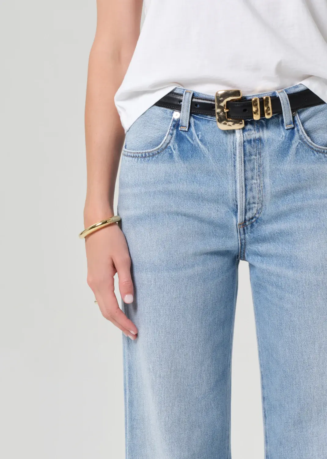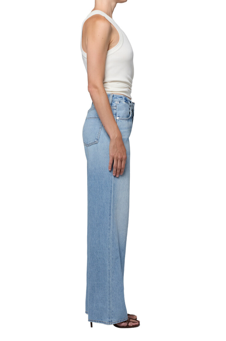 • A timeless silhouette with subtle vintage character, this jean features a high-rise waist and clean, straight-leg shape that drapes with ease. The ‘Ritual’ wash—a sun-faded light indigo with soft whiskering and fading—evokes a well-worn favorite.