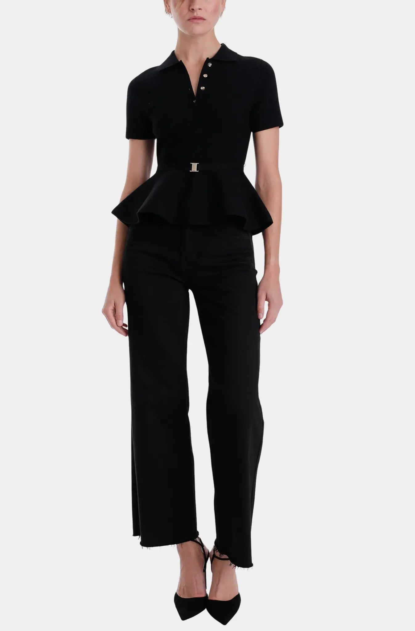 Featuring a chic collared neckline and short sleeves, this versatile piece offers a modern twist on timeless style. The soft knit fabric ensures all-day comfort, making it perfect for both casual outings and polished looks.