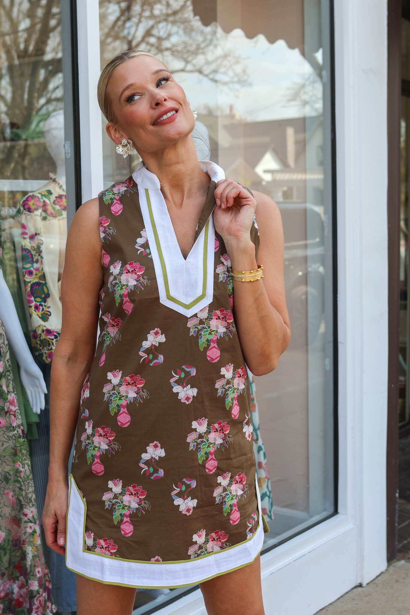 • An easy shift dress in a pretty floral print!