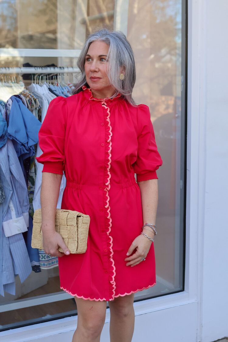 The kind of easy and flattering dress you'll be reaching for all season long. This mini dress features elbow sleeves with puffed accents and a playful ric rac trim, crafted from a comfortable 98% Cotton and 2% Spandex blend.