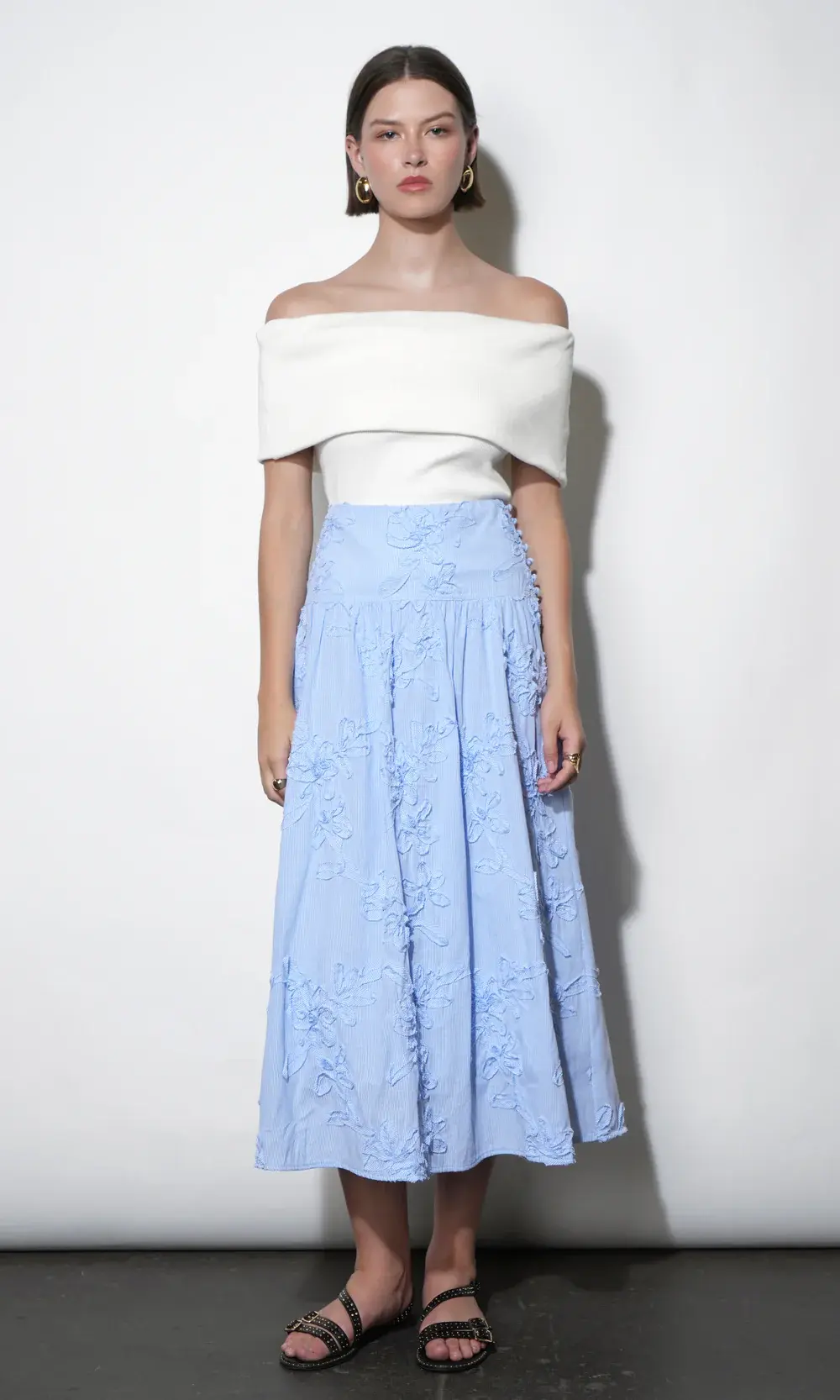 Presented in a brilliant, pristine White, the Ana skirt is a masterclass in clean lines and purposeful volume. This piece is crafted from premium cotton poplin, a fabric beloved for its signature "paper-touch" crispness.