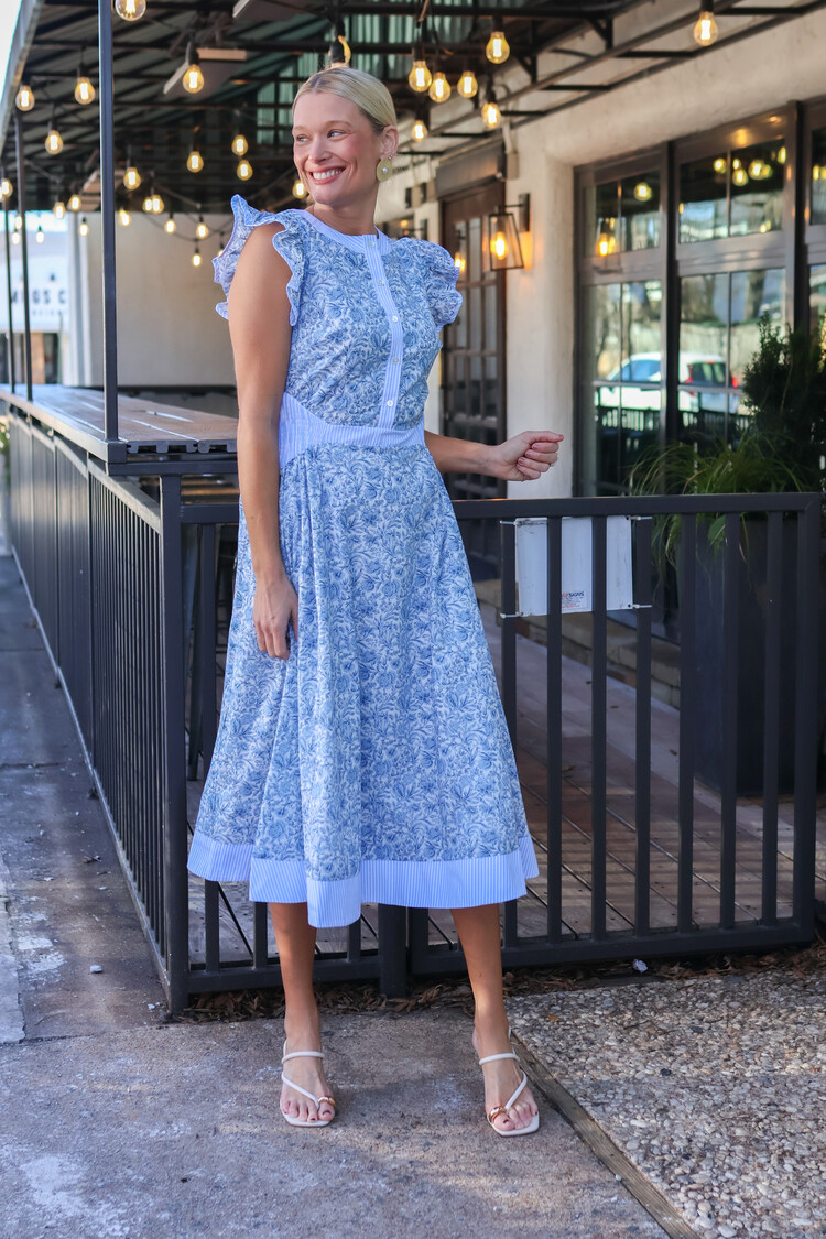 • A beautiful blue floral dress!