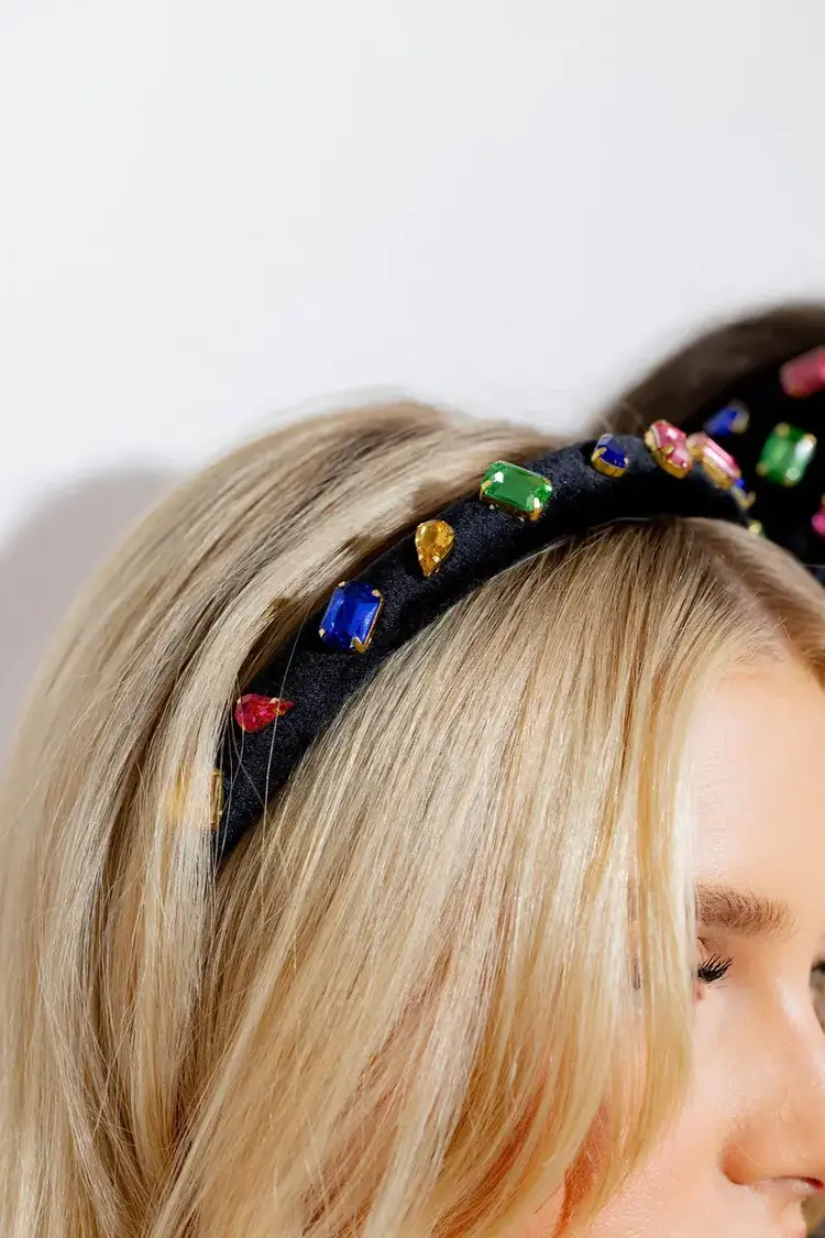 Our best selling ultra slim silhouette in classic black velvet and teal velvet, with hand sewn cz crystals that add just the right amount of embellishment. Black comes with multi colored crystals and teal comes with hot pink crystals.