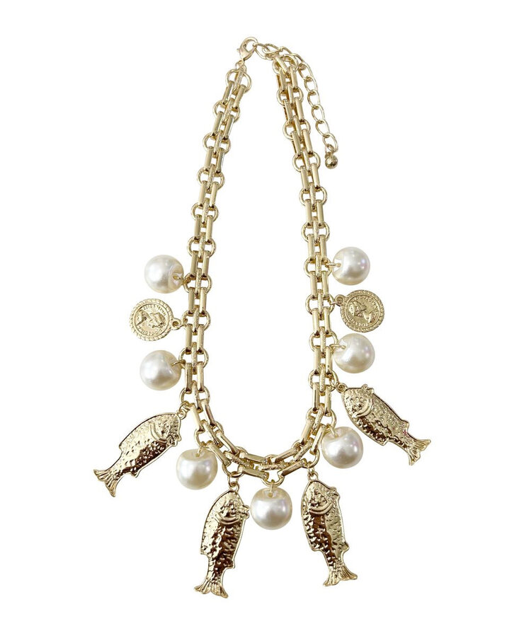 • 18k gold plated 18" adjustable necklace with gemstone accents.