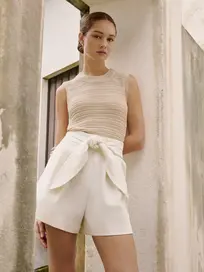 This slinky knit shell in horizontal rib knit can be worn loose or tucked in for an understated yet elevated everyday look. With just a hint of shine and calming neutral shade, this classic tank is sure to be a seasonal staple in every wardrobe.