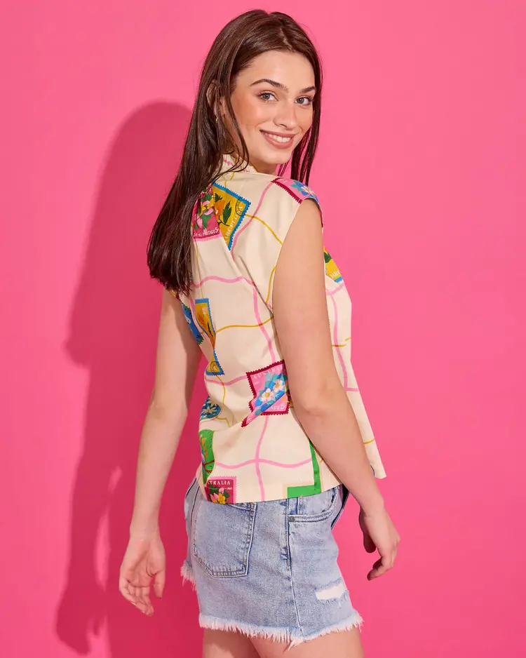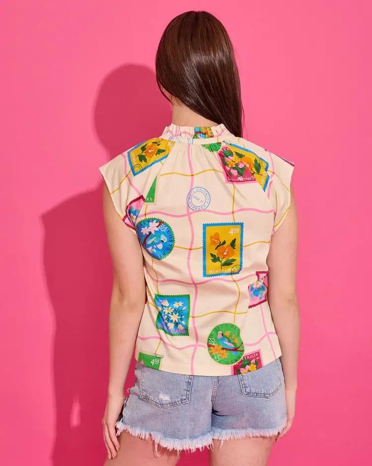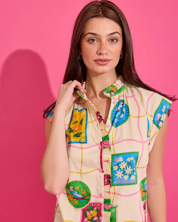 • The Birkin Top will be your new favorite top! Fun and stylish, the Birkin features a fun print, a button front, and a ruffled collar stand.