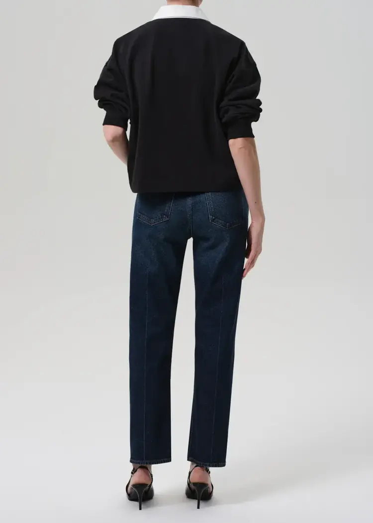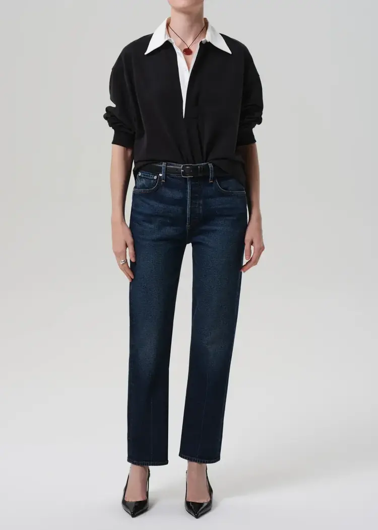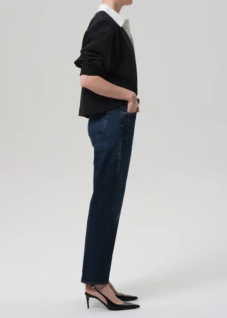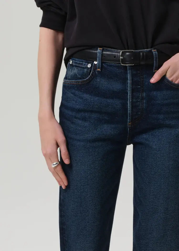 • The Blaine is a vintage-inspired straight leg, cut from Japanese comfort stretch denim with a soft, broken-in feel. Designed with a high rise and ankle-grazing length, it offers a structured yet wearable silhouette.