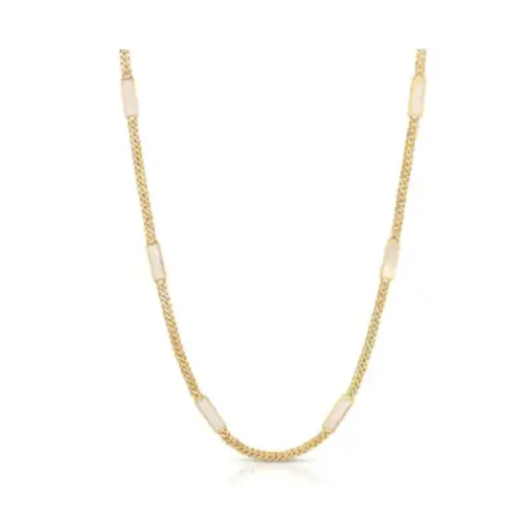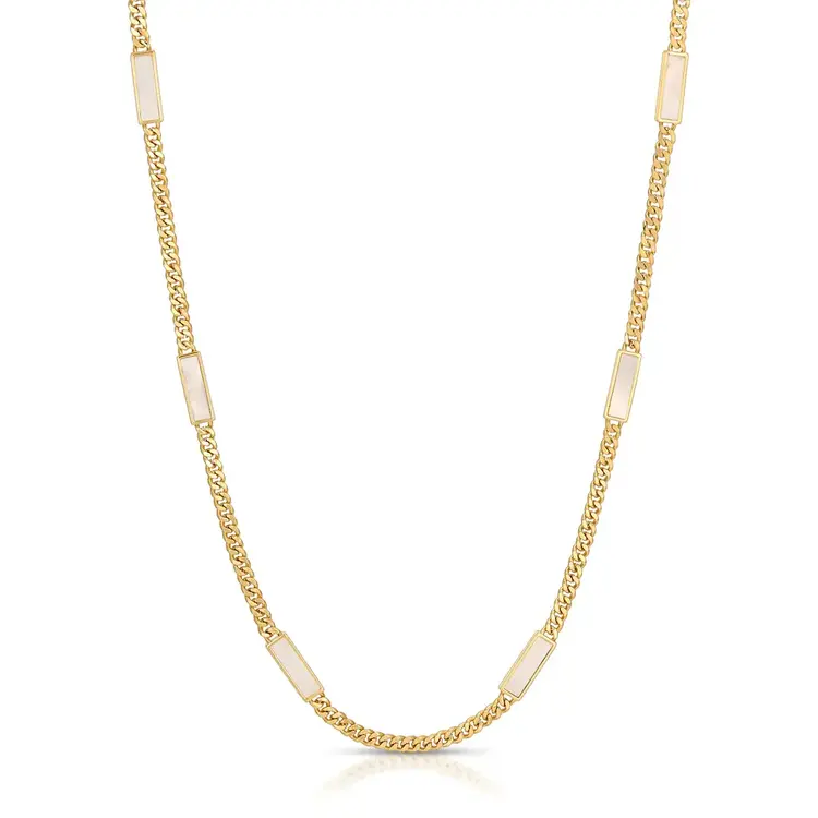 • Cuban Link and enamel inlay bar chain Necklace. 4mm Cuban Link Chain. Measures 16" + 2" Extender. 14k Gold Plate over Brass