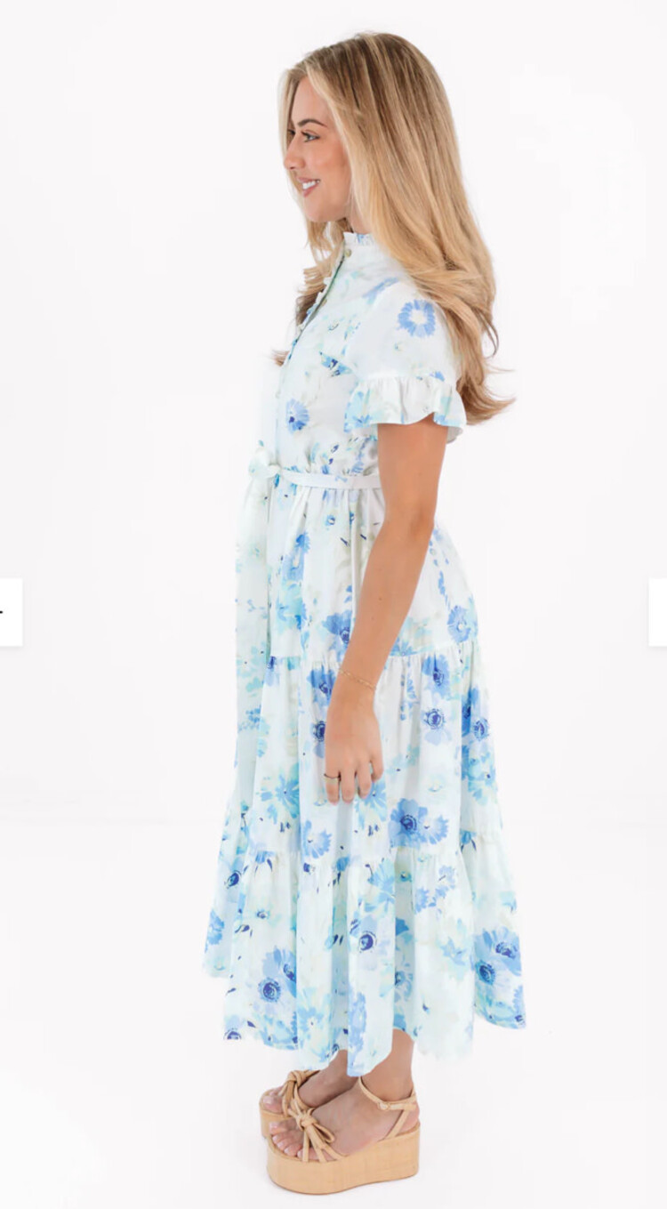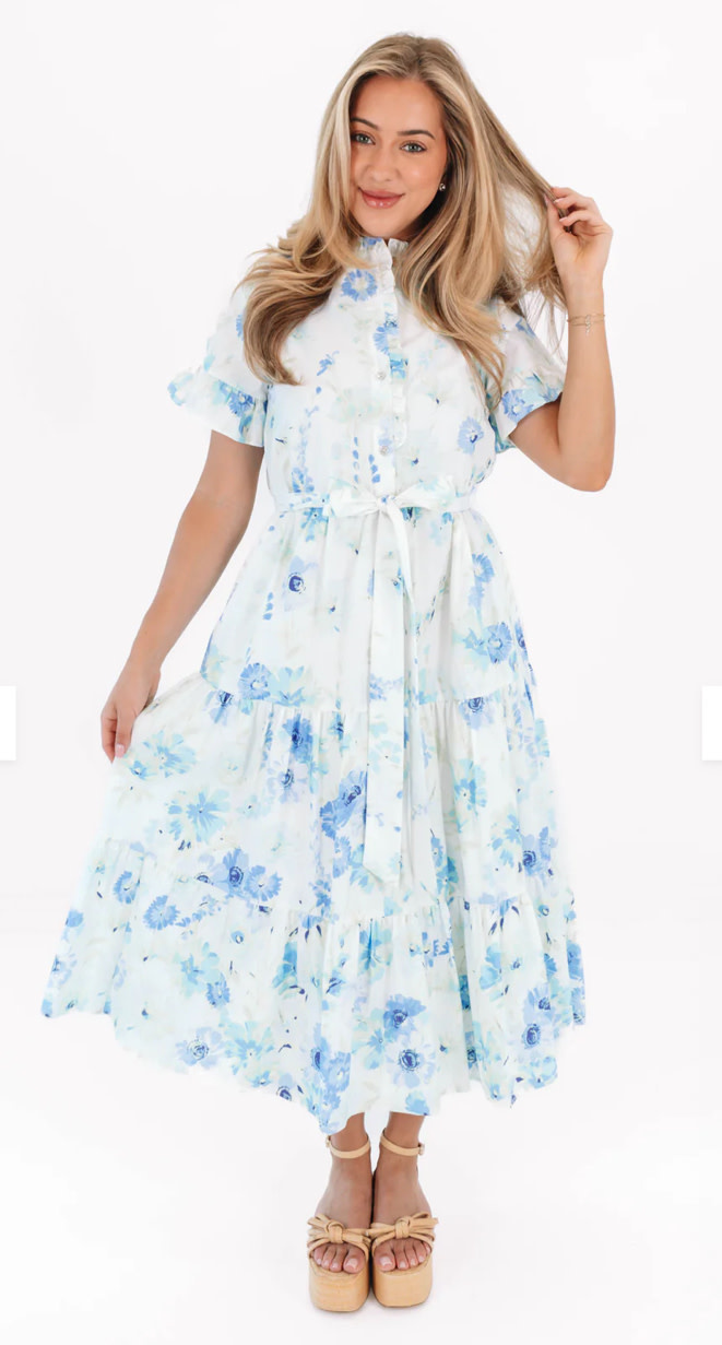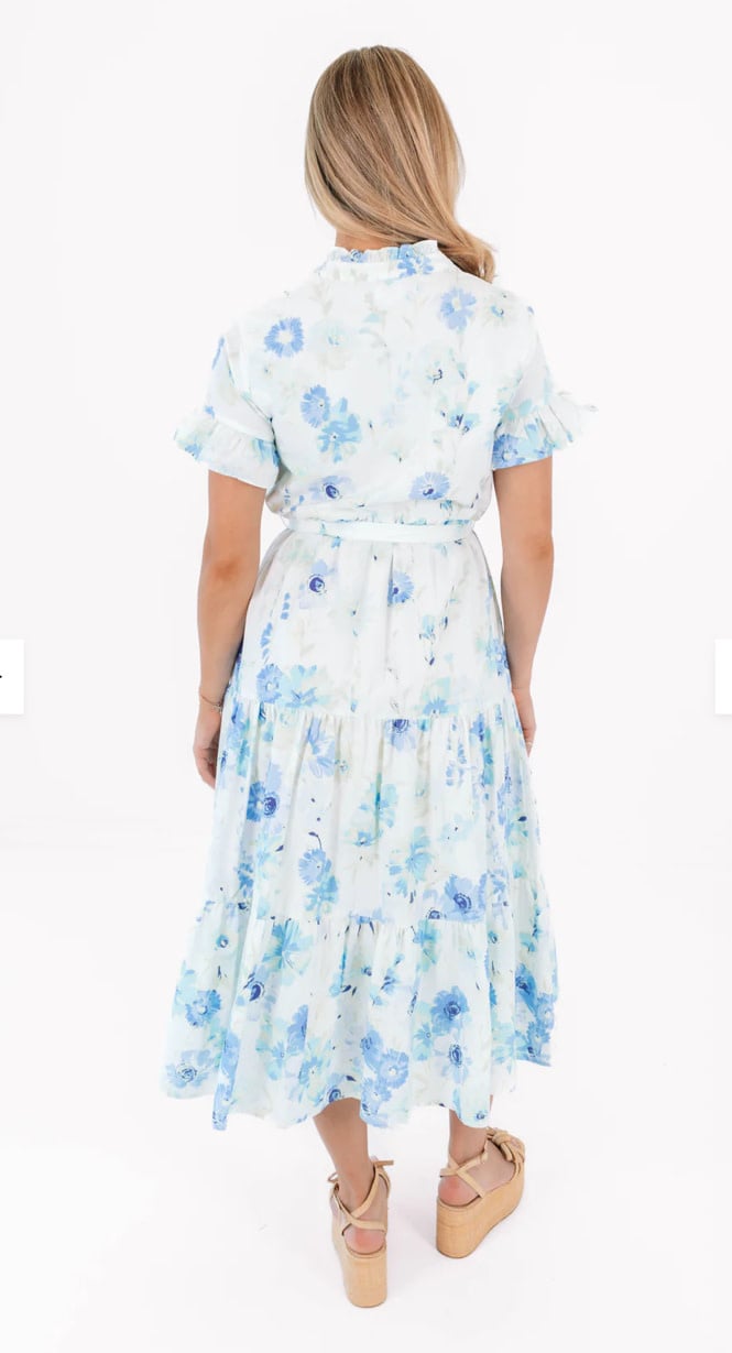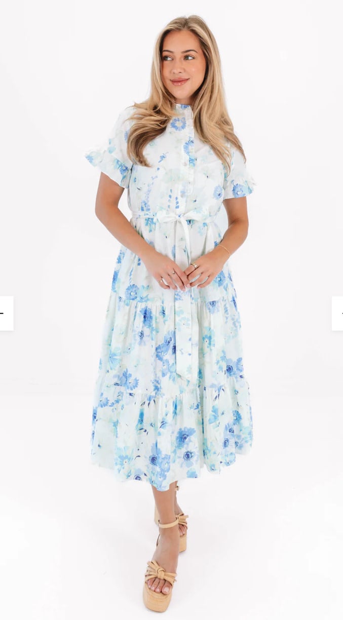 • This playful midi dress features button up neckline & ruffle sleeves, adding a touch of charm & movement. With its flowy silhouette & convenient pockets, it's both stylish & practical—perfect for casual outings or a laid-back day of fun!
