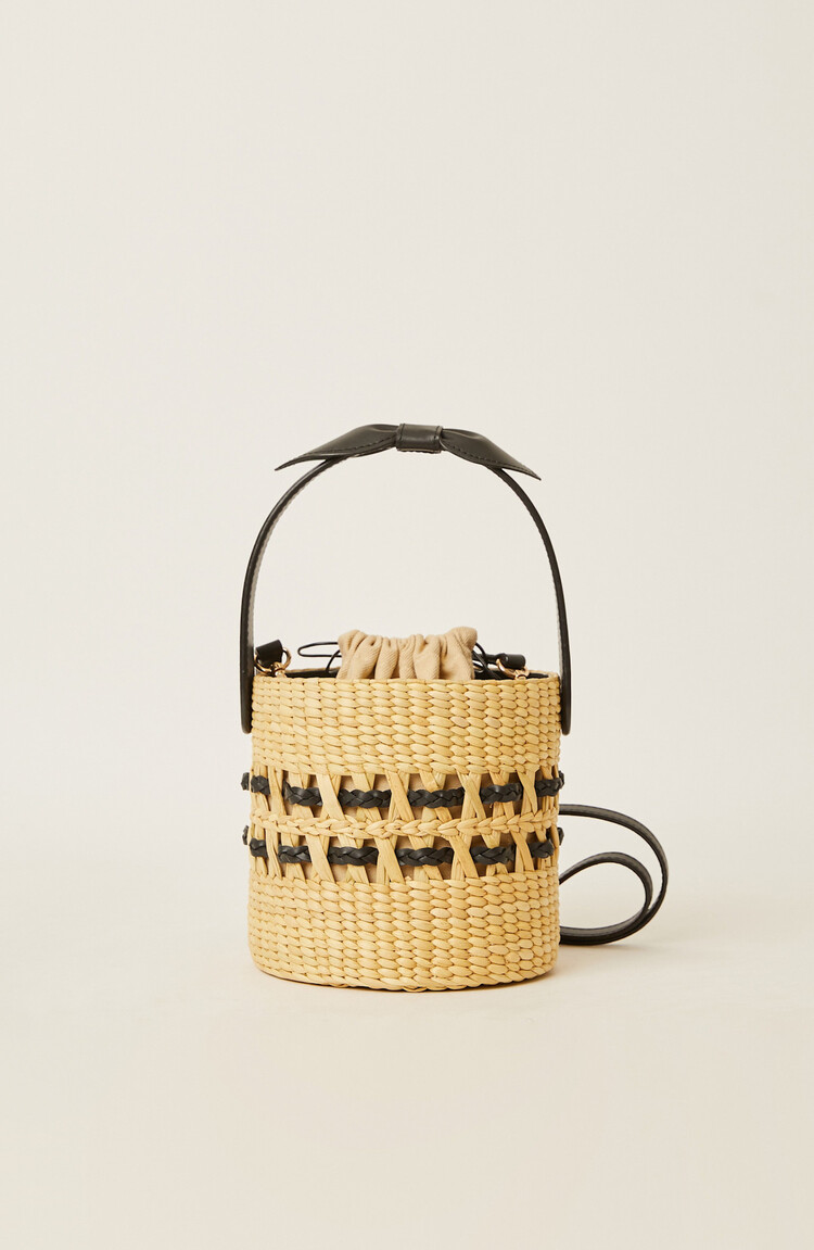 his beautifully crafted design features a natural straw body paired with luxe leather accents for a refined, modern touch. A secure drawstring closure adds functionality, while the versatile top handle and removable long strap let you carry it your way