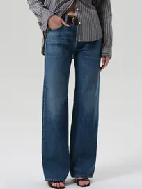 The Annina jean features a high rise and full-length straight leg for a relaxed yet refined shape. The ‘Sunland’ wash is a sun-faded medium indigo with vintage-inspired whiskering. Made from rigid regenerative cotton, the denim has a soft, broken-in feel.
