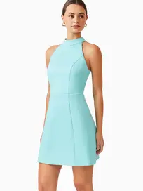 The perfect choice for anyone seeking a stylish yet sophisticated dress. Featuring halter neckline with a stand collar, this dress creates an elegant, flattering look while offering a secure fit. The A-line skirt gently flows out from the waist.