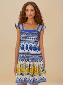 The Off-White Zuli Organic Cotton Dress is a delightful blend of vibrant colors and dreamy patterns. Featuring a charming square neckline, this piece showcases intricate blue and yellow floral motifs that dance across its responsibly crafted fabric.
