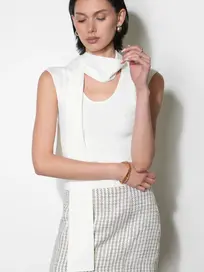 Crafted from a luxuriously soft and inviting knit. It features a crew neckline and a relaxed fit with a two-toned design: a subtle, lighter contrasting hue graces the ribbed cuffs, adding a refined touch to the overall warm beige or camel tone.