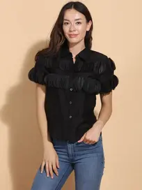Cut from crisp, refined cotton, this shirt features three-dimensional floral lace appliqué cascading across the back. Subtle from the front, unforgettable from behind.
