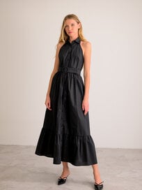 Constructed with polished cotton poplin, the Lavender Brown River Dress in Black exudes elegance and sophistication. Its collared tank design and button front closure add an extra level of refinement to its already chic silhouette. Cotton