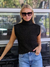 The Isha Turtleneck Tank plays it cool with quiet texture and undeniable presence. Knit from alpaca yarn in our signature fit, its ribbed pattern adds depth, while the turtleneck and sleeveless turnback shoulders bring soft structure with a hint of edge.