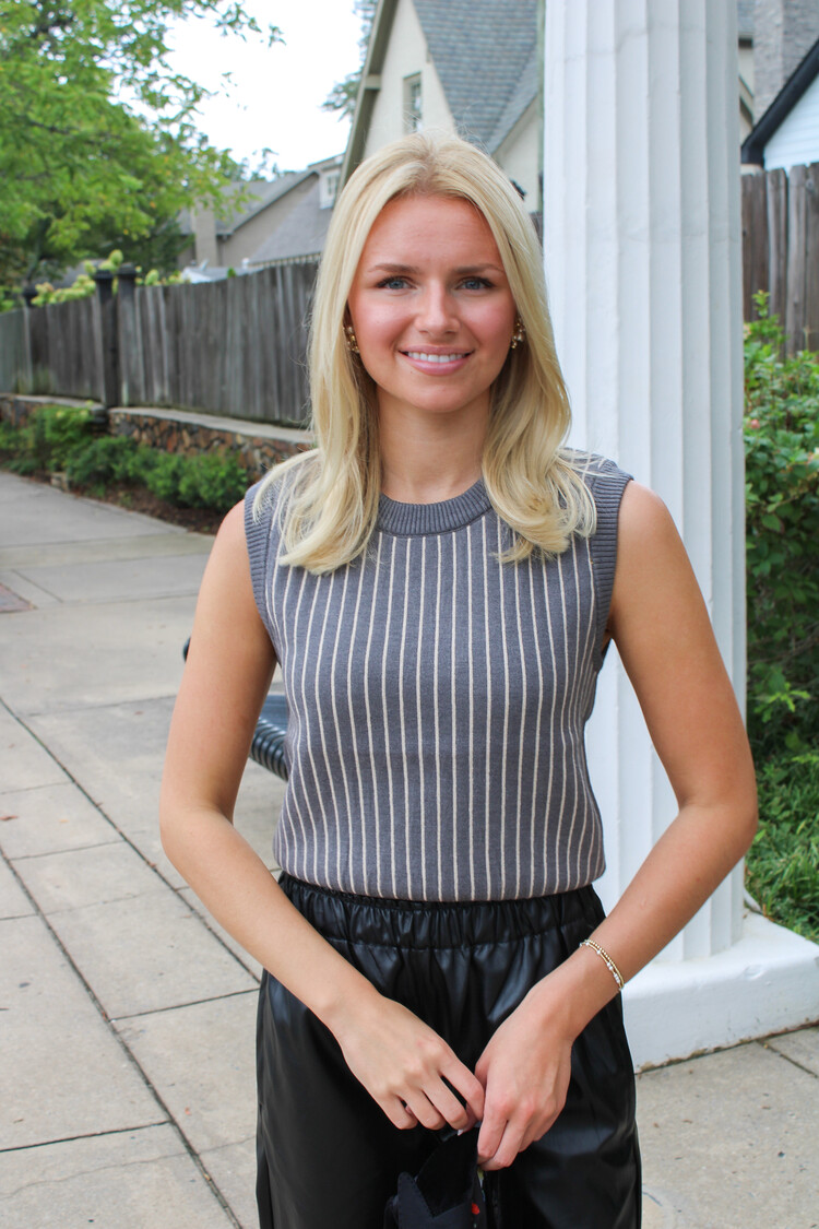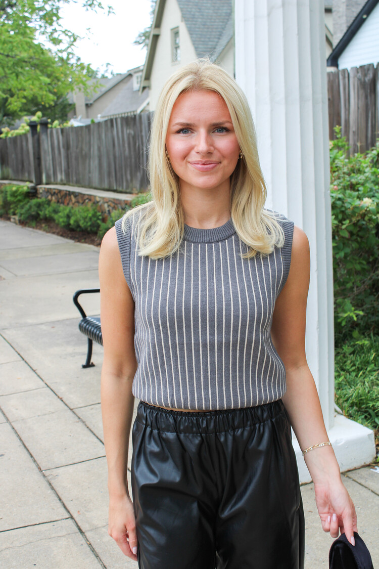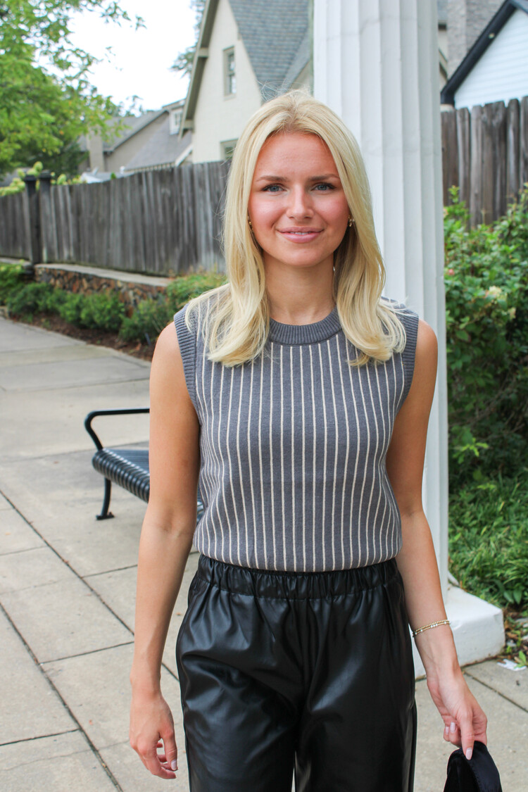 Fuchsia pink sweater in a lightweight wool blend. It features a high neck, straight cut and fluid fabric. Contrasting navy piping highlights the neckline, sleeves and a along the back. The seams are intentionally visible, creating a clean finish.