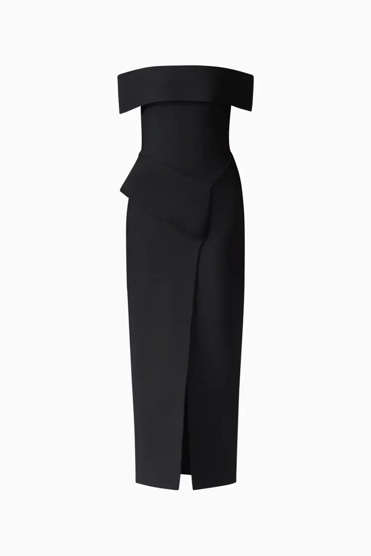 A timeless choice for formals, weddings, or black-tie events. Expertly crafted from double knit fabrication, this gown offers a smooth, structured finish with gentle stretch, ensuring a comfortable yet fitted silhouette that enhances your natural shape.