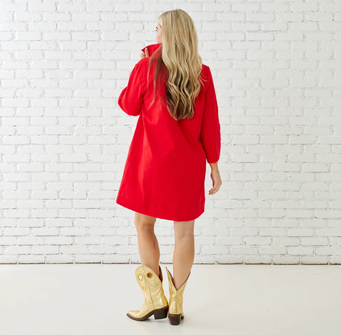 • Your go-to dress for the season — bold color, flattering shape, and easy-to-wear style. The Chloe Dress features a stand-up collar, gold buttons, and a relaxed fit that looks great dressed up or down.