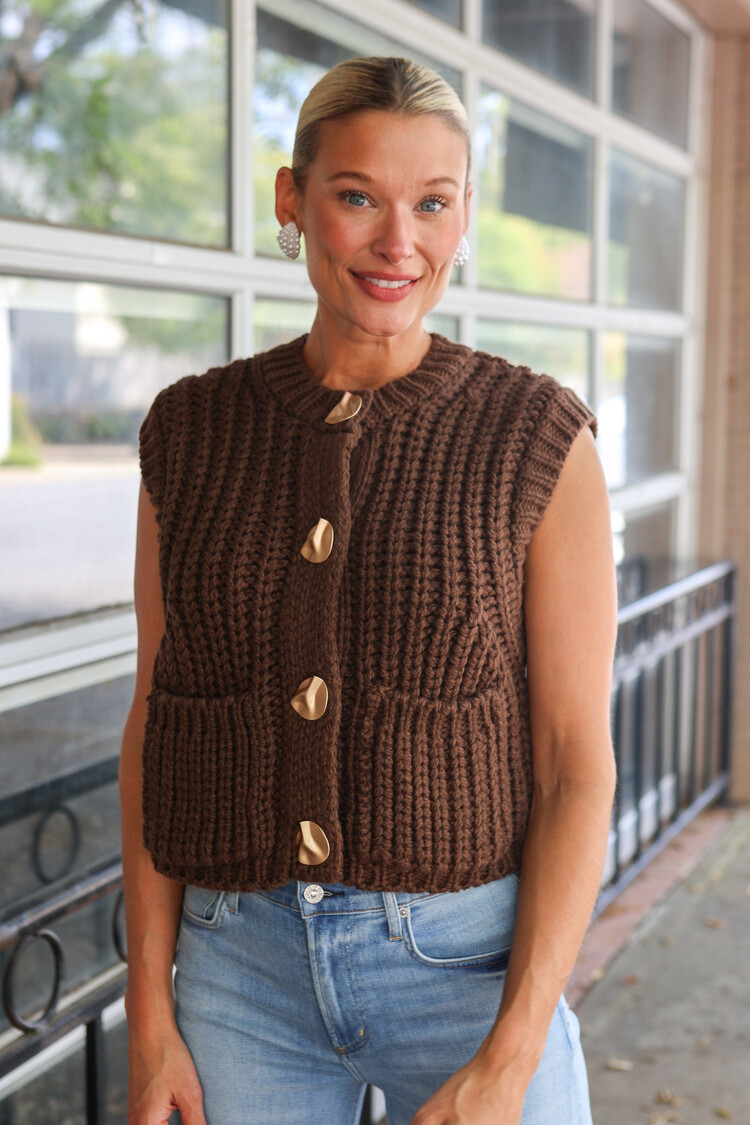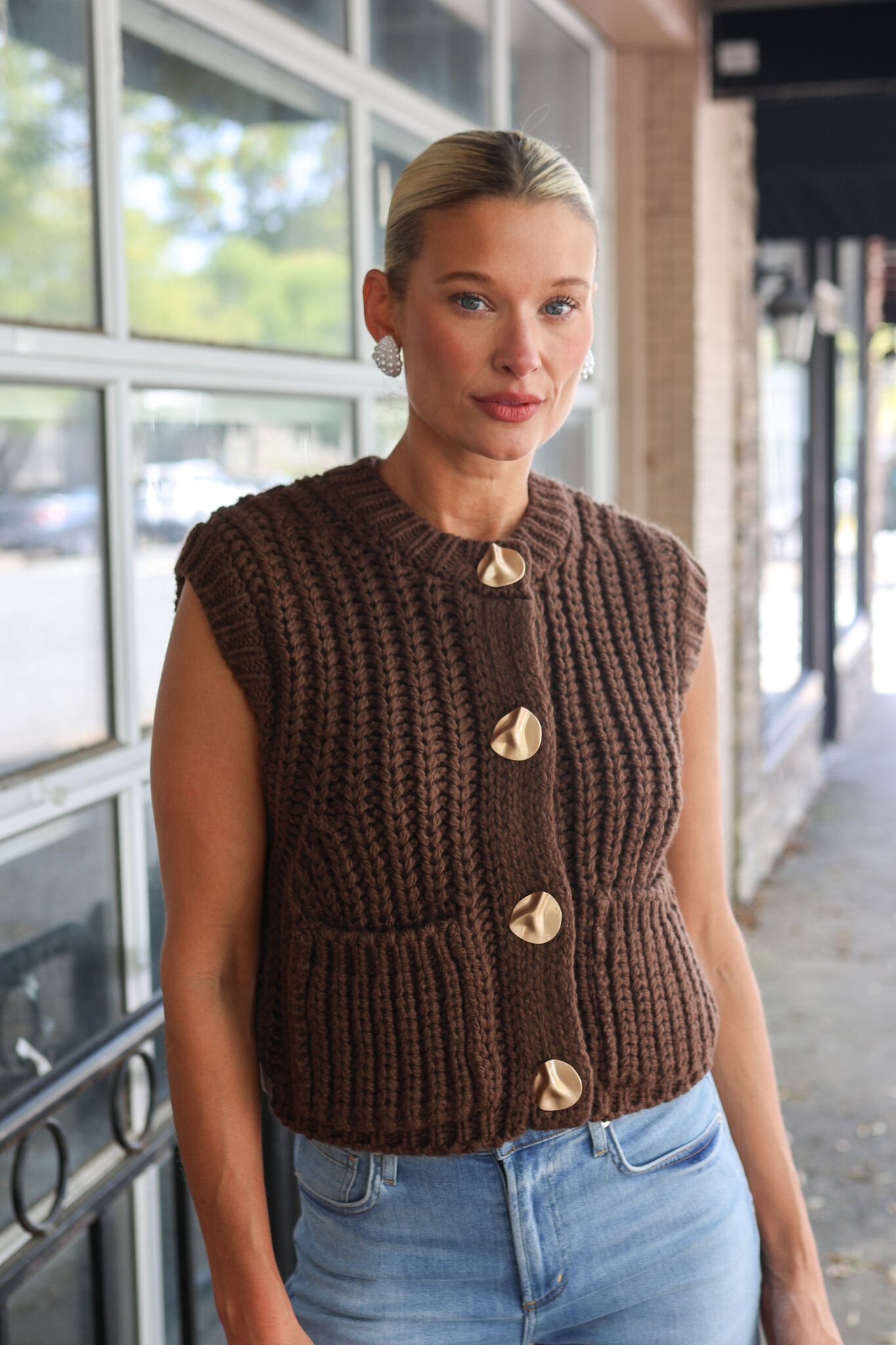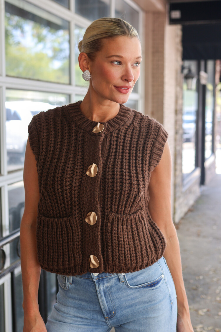 A cozy knit sweater with the chicest gold buttons!! You can wear un buttoned with a white tee for a relaxed look or buttoned up for a put together cozy look!