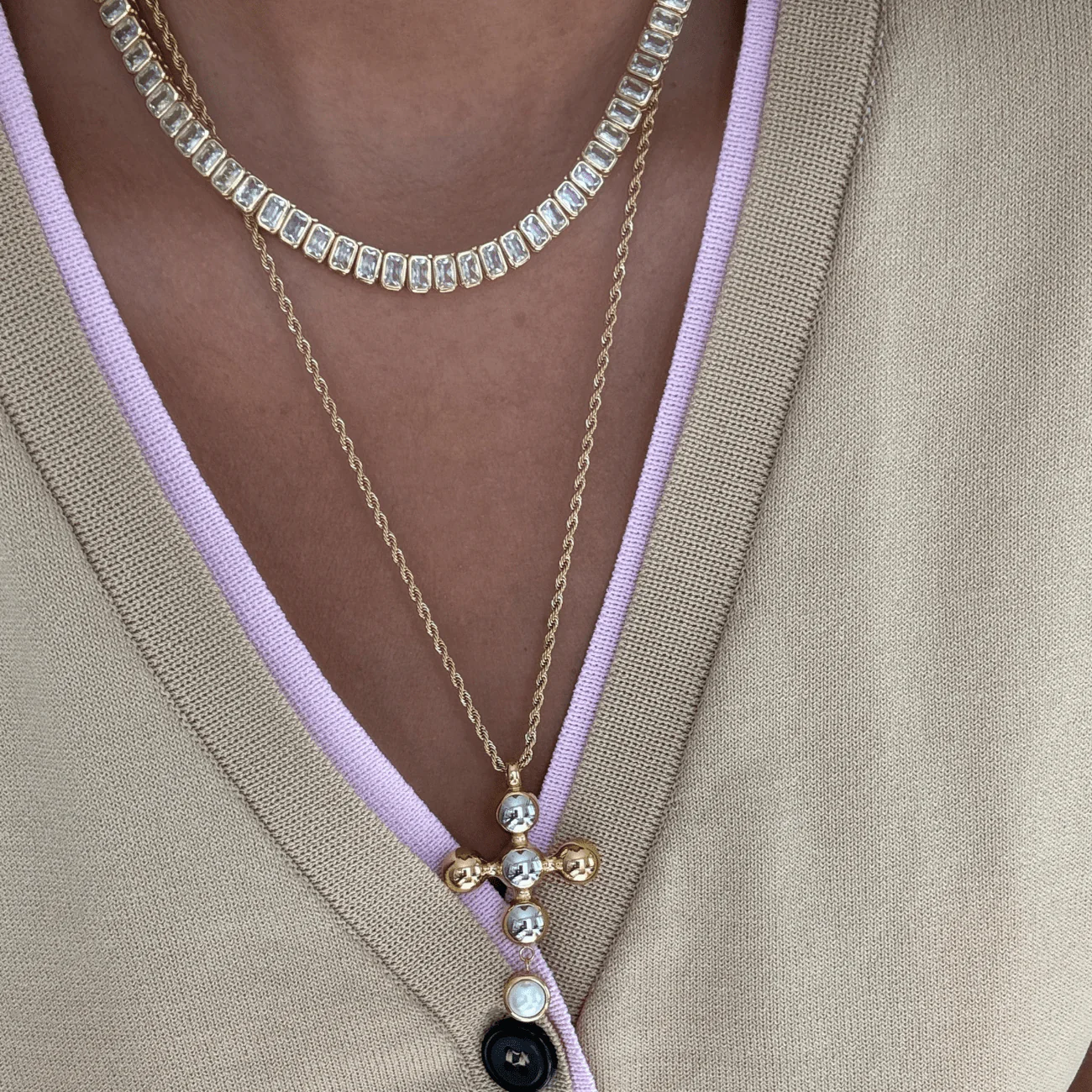 The silky halter-style column with ruffle detailing at the neck and skirt can be worn loose or cinched at the waist with an optional tie belt, and features our Mallorca-inspired Mosaic print in a sun-drenched Mediterranean color palette.
