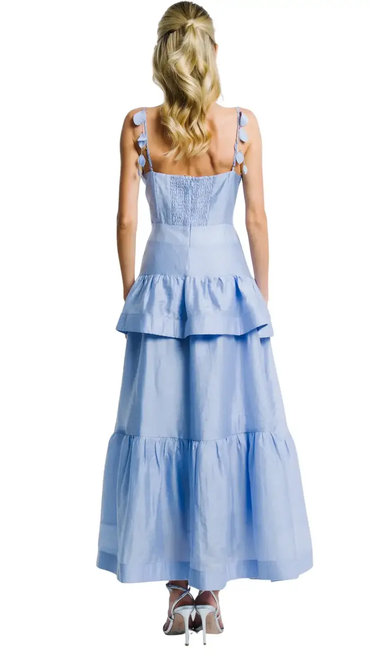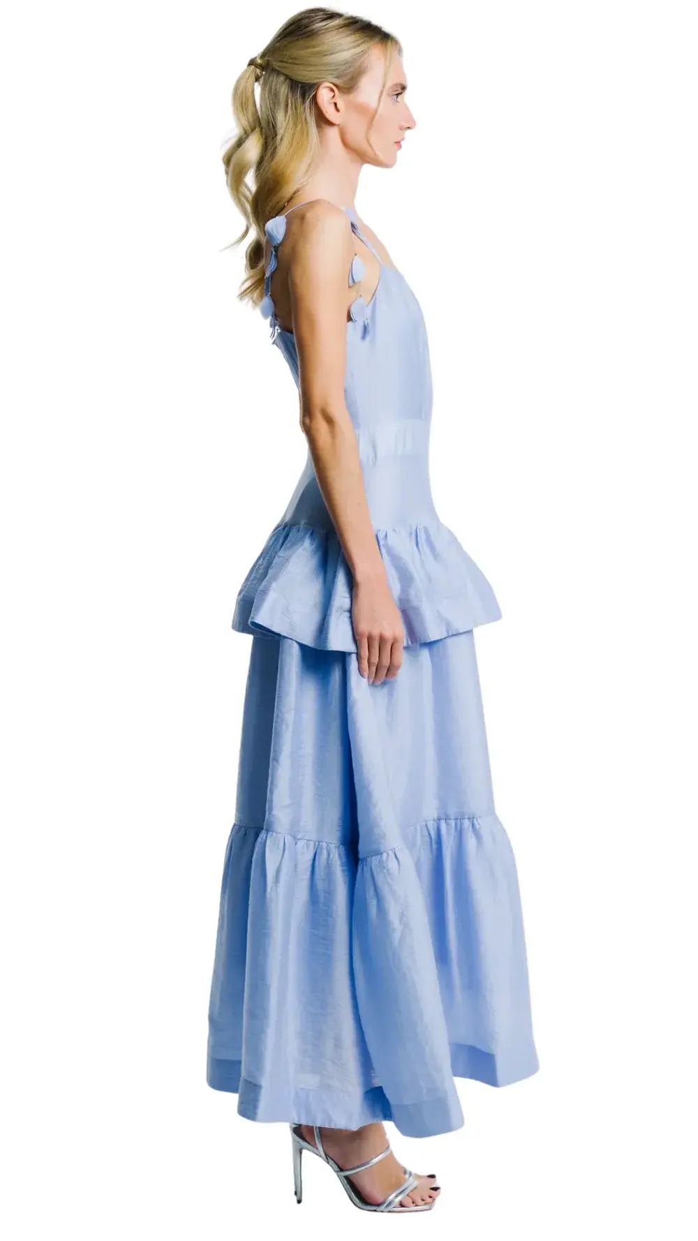 From CIEBON, this dress features: Printed voile fabrication Halter neckline Ruffle detail Sleeveless A-line silhouette Pull-over construction Back elastic Ruffle at bottom tier Self belt at waist