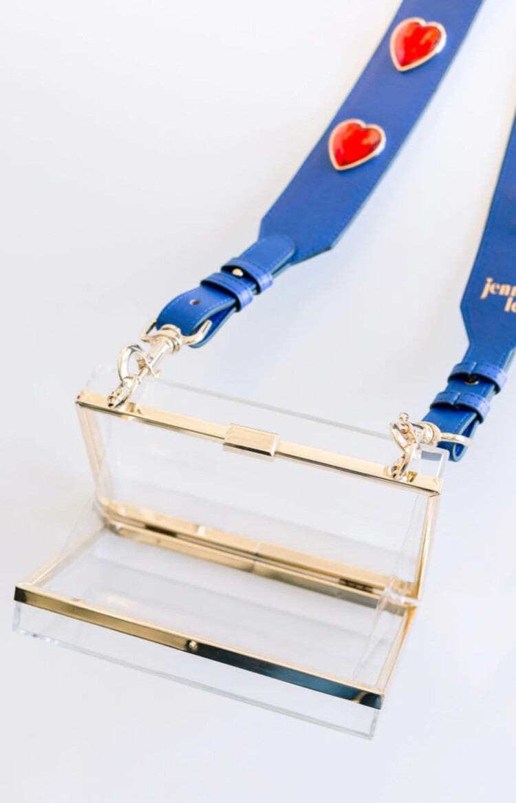 Finish your game day / stadium look with this functional clear acrylic rectangular clutch. Sized to fit the iPhone15Pro max along with other items, this purse is perfect for your evening out essentials.