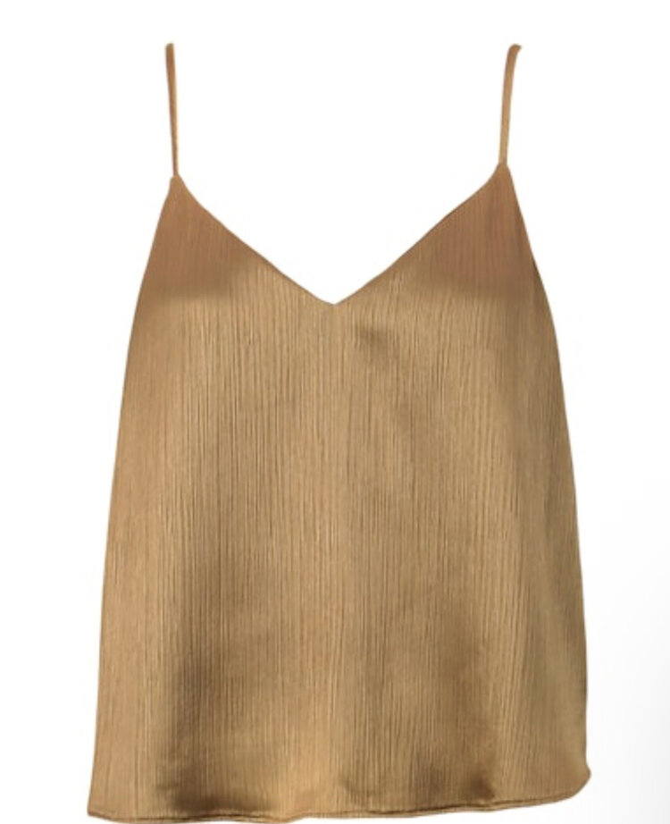 • The Golden Hour Cami is your new going-out essential — silky, lightweight, and stunning on its own or layered under a blazer. A rich metallic gold tone that instantly elevates denim or dressier trousers.