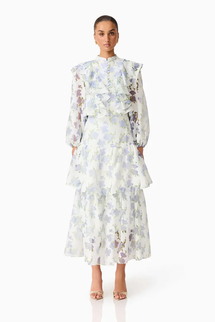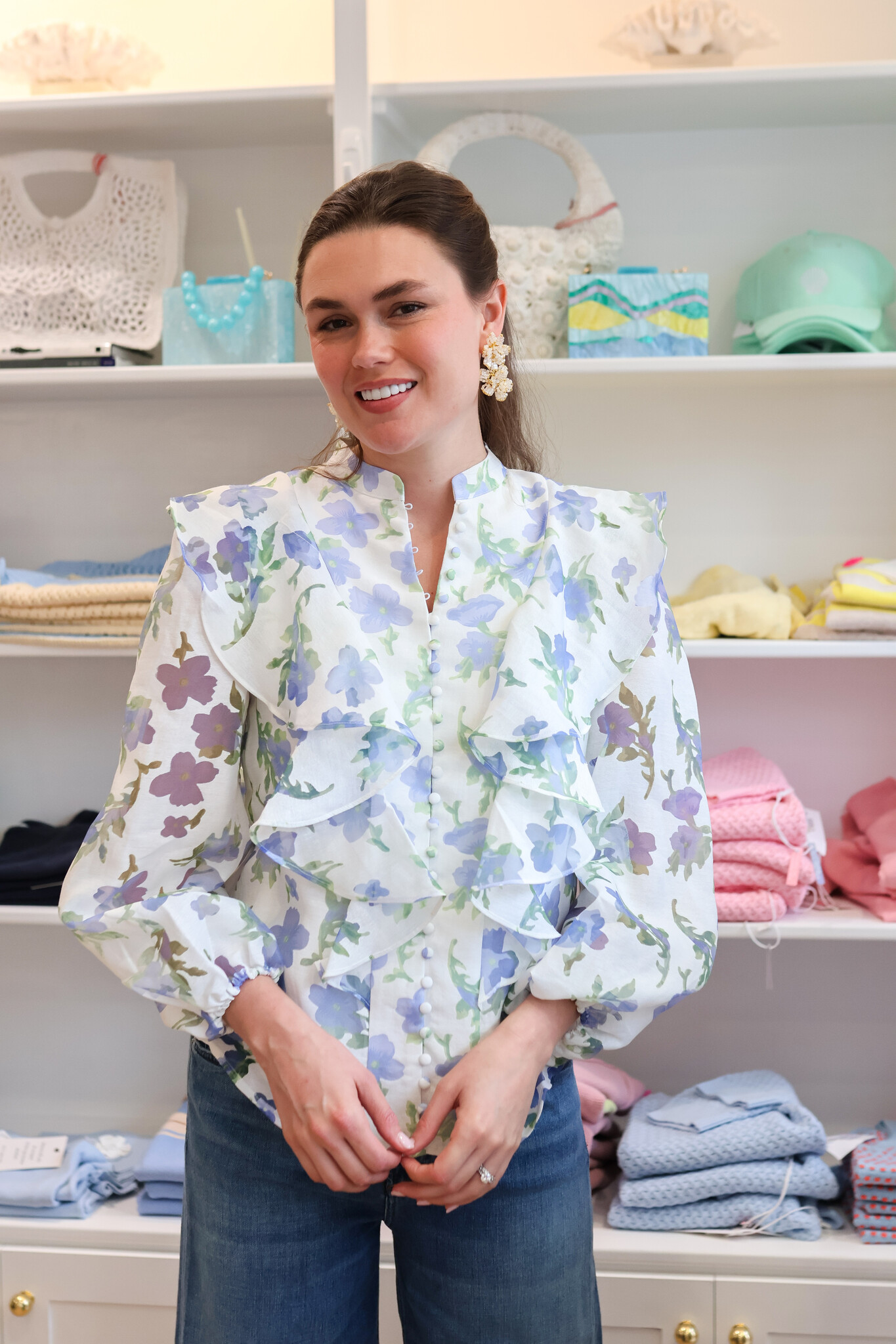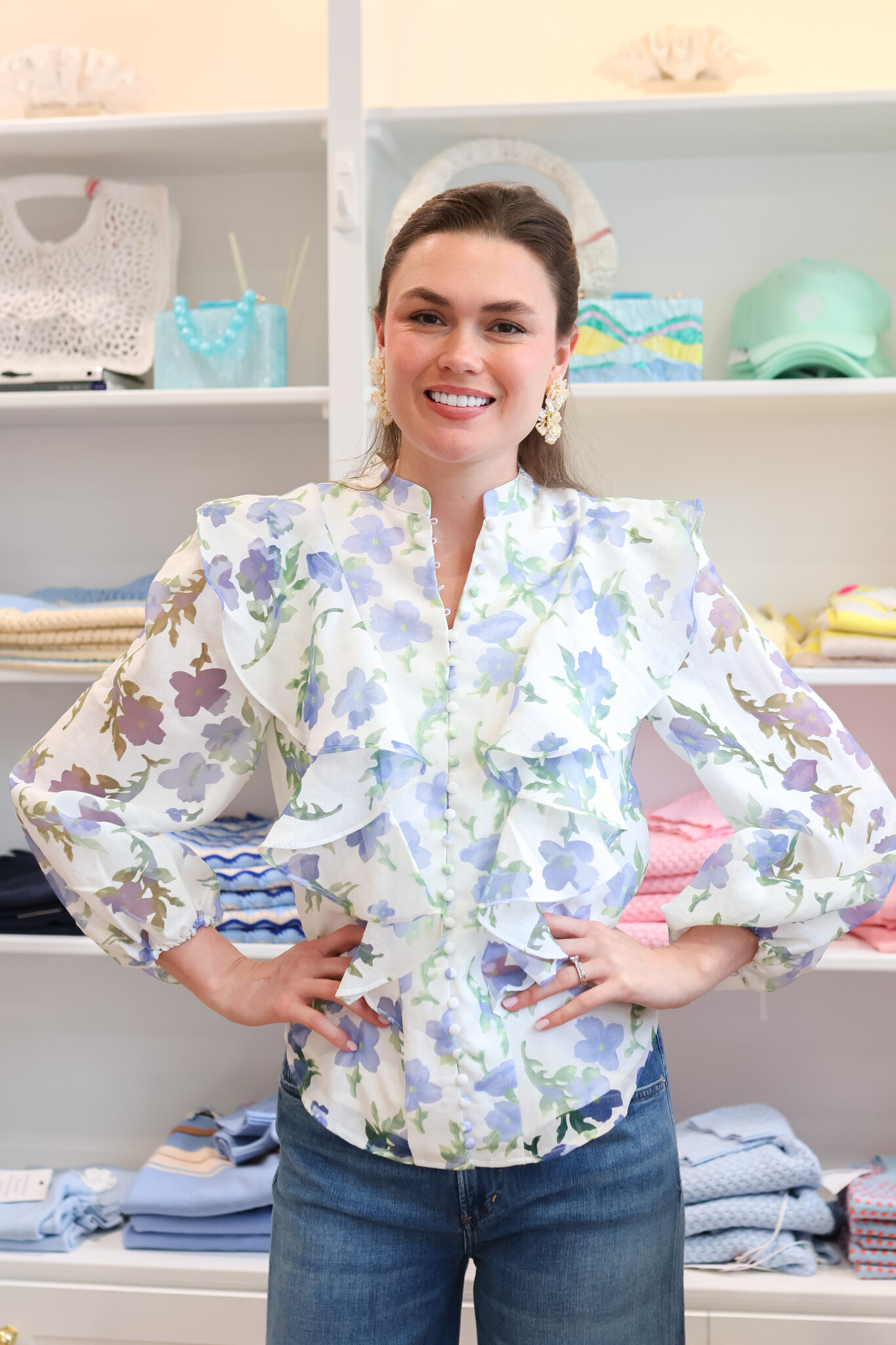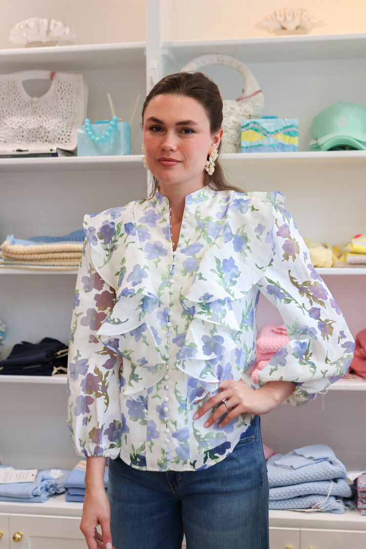 The top is designed with a classic collared neckline, centre front buttons, and long sleeves, giving it a refined, tailored look. It’s fully lined for added comfort, with a fitted silhouette that flatters while keeping things structured.
