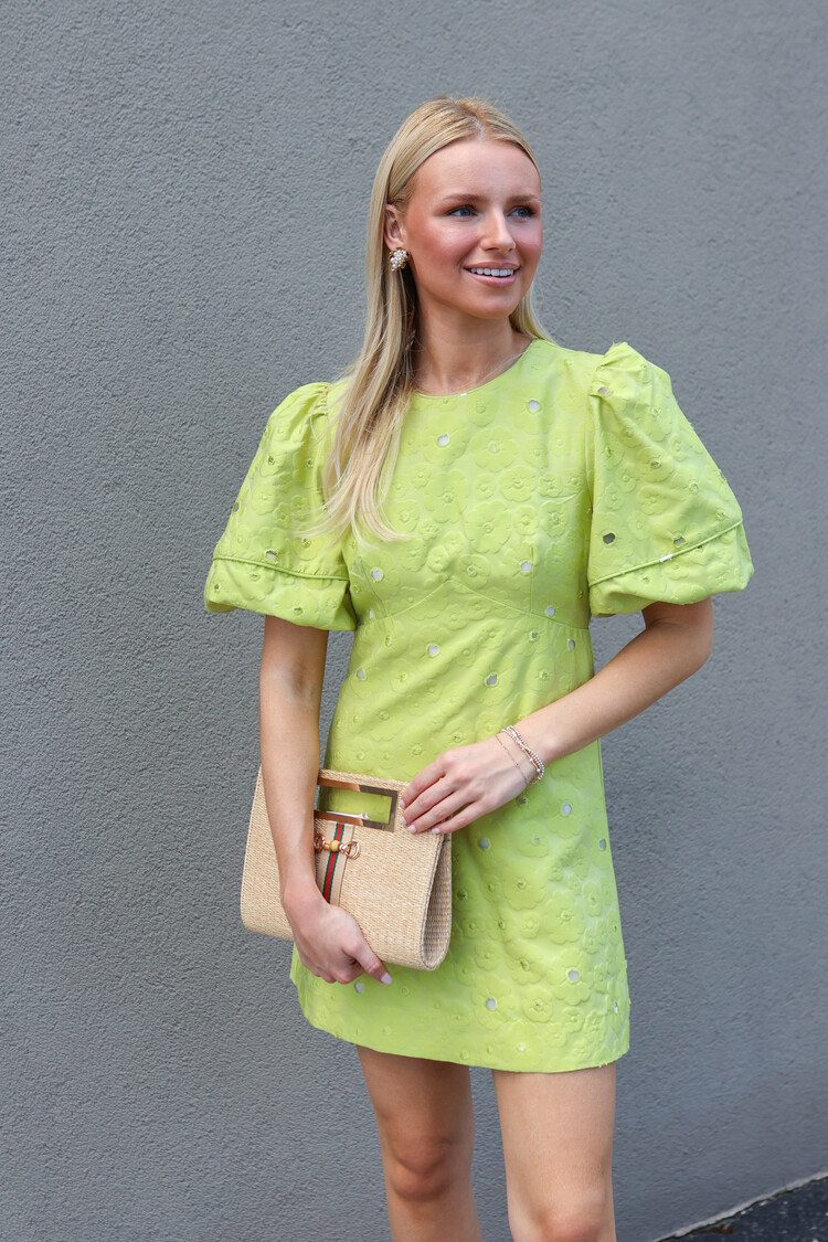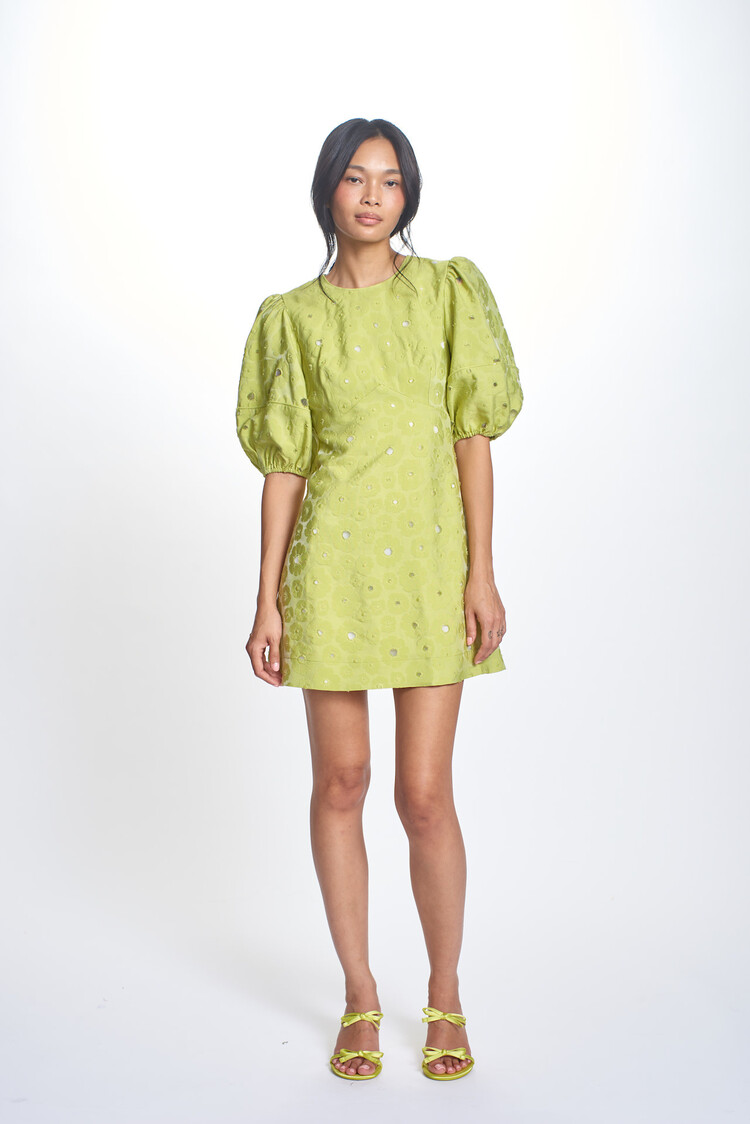 • The Cloe Dress is a chic and feminine option for any occasion. Standout puff sleeves and piping detail with an open back and empire bust line.