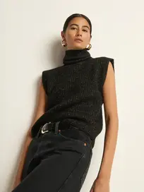 The Isha Turtleneck Tank plays it cool with quiet texture and undeniable presence. Knit from alpaca yarn in our signature fit, its ribbed pattern adds depth, while the turtleneck and sleeveless turnback shoulders bring soft structure with a hint of edge.