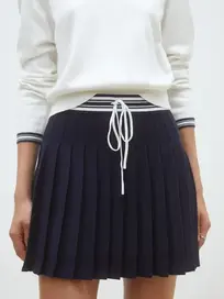 Midi skirt with belt loops. Features subtle paneling that creates a flared A-line silhouette and adds movement. Invisible center-back zipper and a detachable elasticized raffia belt for a relaxed, summery touch. Made from a breathable linen-blend fabric.