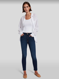 The Isola is a mid-rise cropped bootcut designed for everyday ease. Crafted from soft stretch denim with a lightweight feel, it offers a flattering fit with lasting comfort. The Regency wash—a dark indigo with soft fading, marbling, and whiskering.
