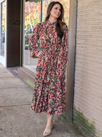 The Gwenyth Dress features a straight silhouette with a midi length and a discreet back slit, providing ease of movement and comfort. Its short sleeves and round neckline make it suitable for casual wear or elevated occasions like a date night.