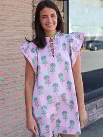 The Oasis Dress captures the spirit of summer days with a silhouette designed to flow from sunrise to “the golden hour”. Crafted from a crisp woven cotton, this tiered maxi features scalloped trim, soft flutter straps, and a flattering square neckline.