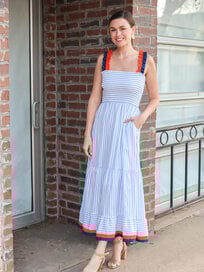 Embrace timeless style with the Legacy Dress. This stunning midi features thick straps and a chic floral print, complemented by an O-ring belt for a flattering fit. The center back zipper ensures easy wear. Perfect for sunny gatherings or an evening out.