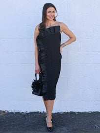 Sophisticated with a romantic twist, the Lila Dress in Red is made to stand out. Designed in a smooth stretch crepe fabrication with a body-hugging fitted silhouette, this midi dress brings modern elegance and sculpted form to your next special event.